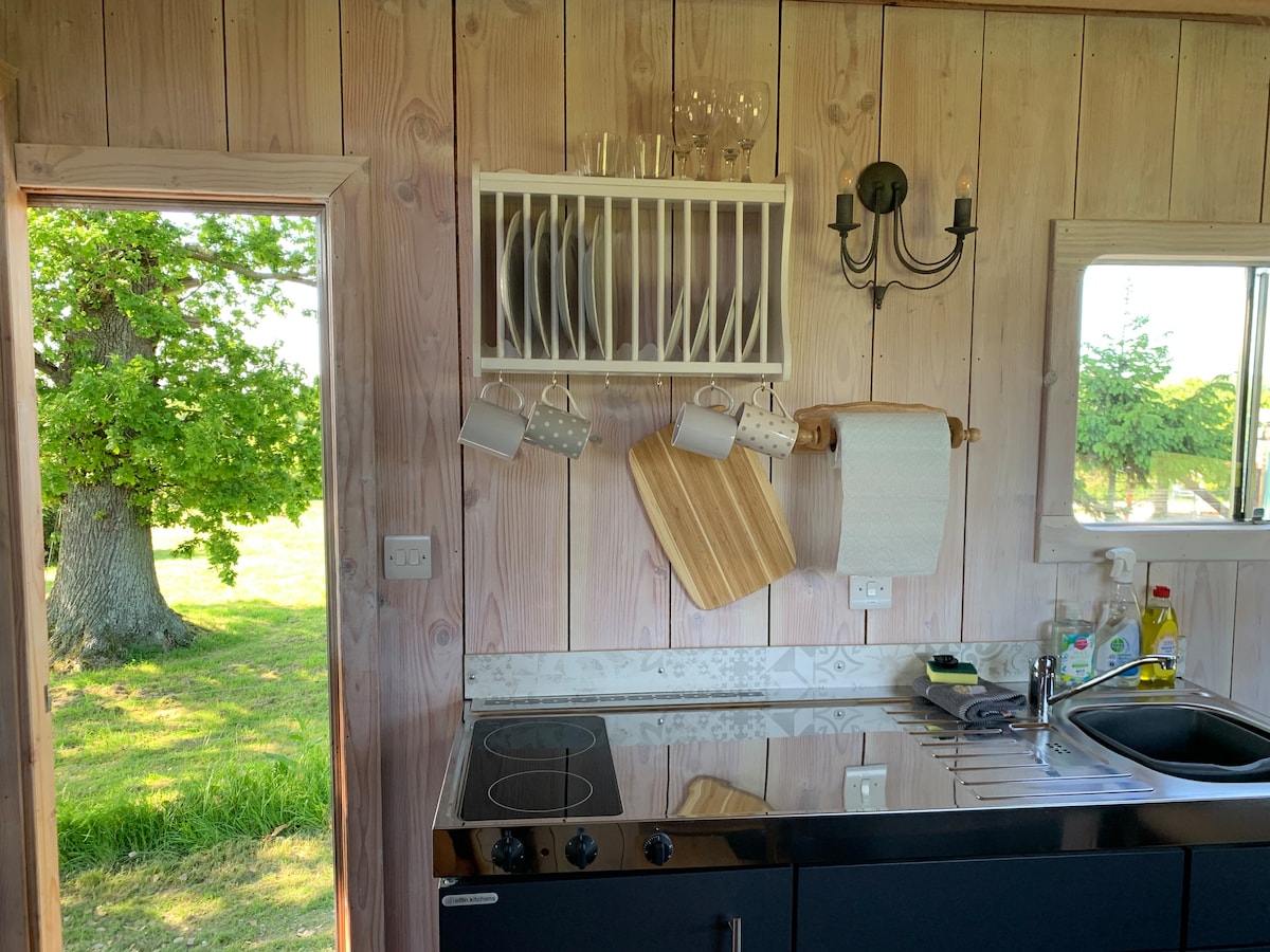 Carromato de lujo, baño con ducha y estufa de leña, ubicado en un huerto. Dirigimos una escuela de equitación con licencia, Red Park Equestrian Centre, y tenemos muchos caballos y ponis amigables. Una unidad totalmente independiente, bien equipada: nevera de tamaño completo, nevera, placa de dos fuegos, televisión inteligente, wifi y una cama acogedora. Hay espacio al aire libre con banco de pícnic y un horno de pizza de leña. Ten en cuenta que puede haber ruido de un parque infantil. Estás a poca distancia a pie del pueblo con maravillosos pubs, restaurantes y comida para llevar.