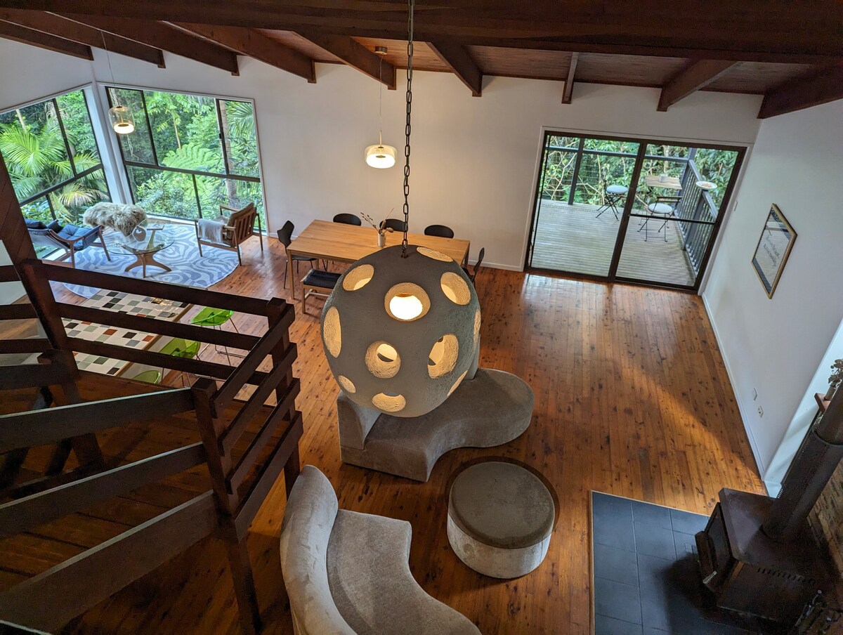 Tómate un tiempo en un alojamiento de lujo entre los árboles. Foliar House está situada en la cima del monte Glorious, rodeada de una prístina selva tropical que alberga aves, ualabíes y petauros de azúcar, rutas de senderismo y una cascada solo para lugareños. Con techos de 5 metros de altura, el primer piso de Foliar combina una generosa sala de estar de planta abierta con chimenea, comedor y cocina. Encontrarás los dormitorios principales en el segundo piso, ambos con camas tamaño queen, así como un baño privado.