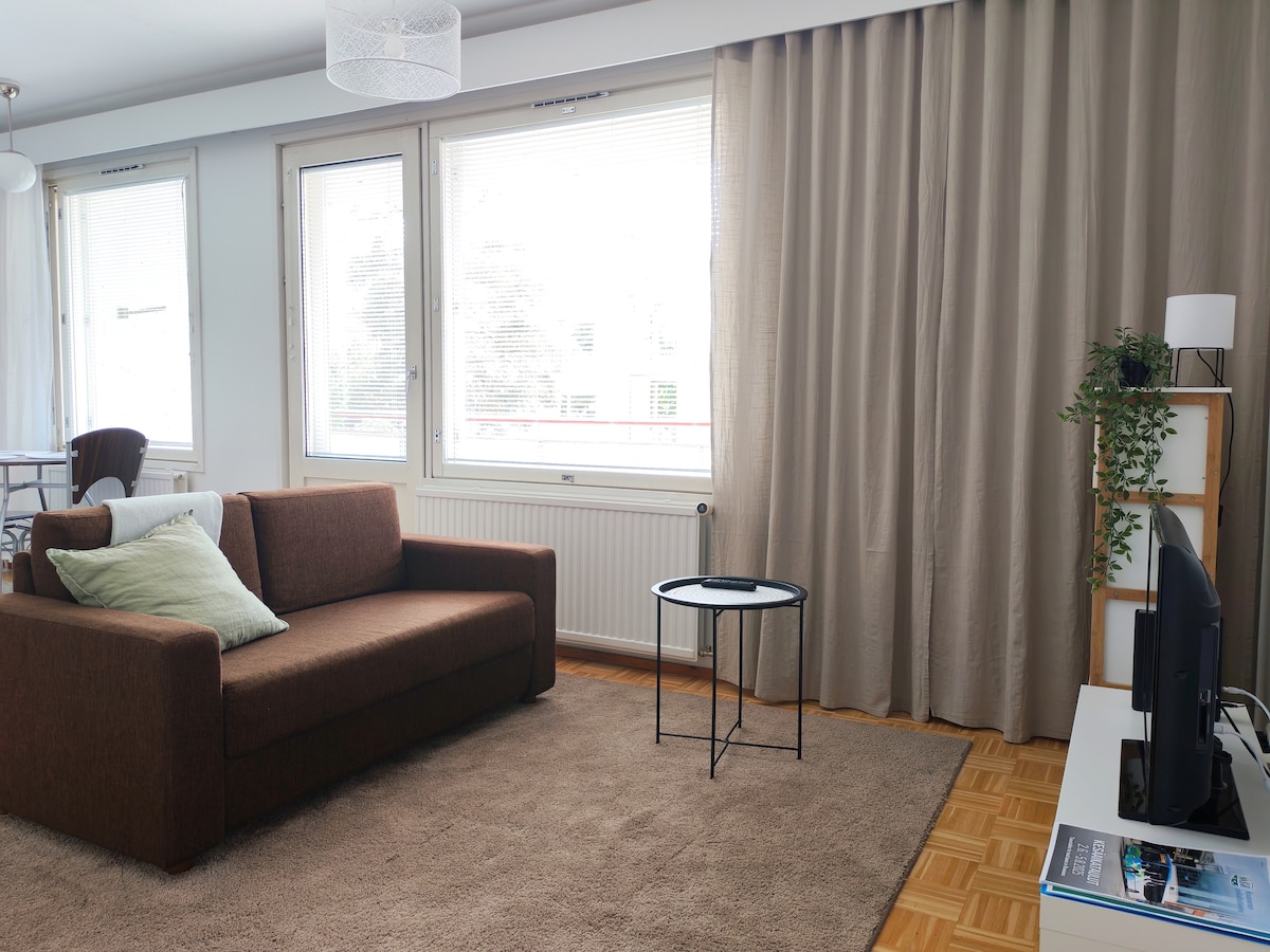 Acogedora habitación con baño, cocina americana y balcón francés cerca del centro de la ciudad. Cama de 140 cm de ancho. Sábanas, toallas y utensilios de cocina. TV. Microondas, lavadora. En una bodega hay una sala de secado. Supermercado, estación de autobuses y estación de tren a poca distancia. Hay un estacionamiento gratuito a lo largo de Karhunkaatajantie. También puedes estacionar en el patio durante 3 horas con un disco de estacionamiento. Te enviaré instrucciones para la llegada autónoma una vez que hayas reservado. ¡Disfruta de Laponia!