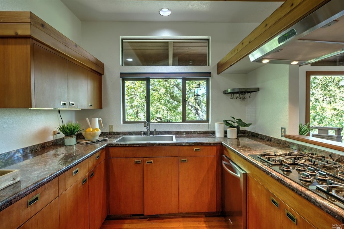 Ubicada entre los árboles en una ladera tranquila, nuestra casa de inspiración nórdica está a menos de 5 minutos en coche de Sonoma Plaza, donde encontrarás pintorescas tiendas, salas de degustación, restaurantes con estrellas Michelin y mucho más, todos los increíbles viñedos, restaurantes y la naturaleza espectacular que Sonoma, Glen Ellen, Kenwood y Napa tienen para ofrecer. Esta casa de 3 dormitorios y 2,5 baños tiene capacidad para 6 personas y cuenta con cubiertas de madera, cancha de bochas, mesa de picnic, jacuzzi y vistas al valle de Sonoma.