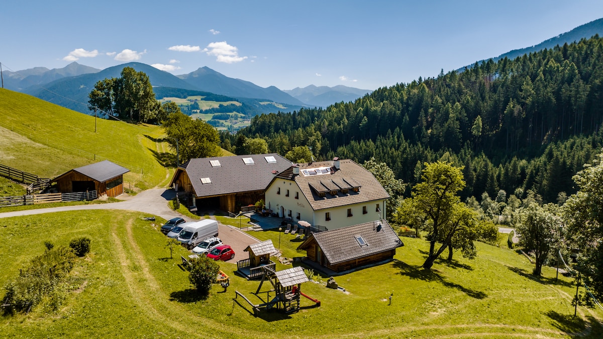 Nuestra granja se ubica en una encantadora meseta soleada justo encima del pueblo vacacional Taisten, en medio de la naturaleza virgen y con impresionantes vistas panorámicas de los majestuosos Dolomitas. Escápate del ajetreo y deja que el resto parezca estar lejos del estrés y la vida cotidiana. Compartimos: Andreas y Michaela, los niños Sofia, Samuel y Linda, así como nuestra abuela Rosa, gestionan el Mahrhof en el lado soleado de Tesido, en el este de Plan de Corones. ¡La familia Schwingshackl te da la bienvenida!