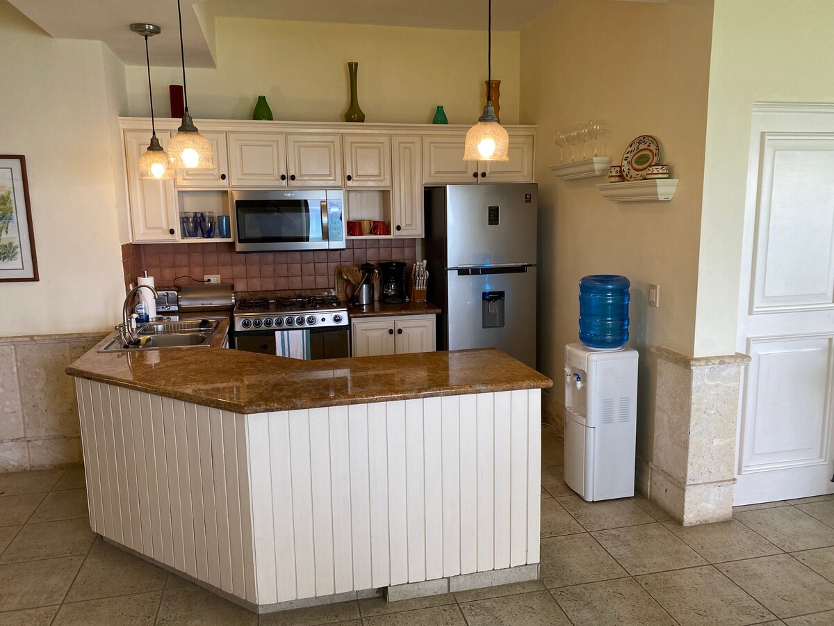 *****Tenga en cuenta que la piscina permanecerá cerrada del 27 al 30 de abril. Las tarifas durante este periodo se han ajustado para reflejar la indisponibilidad temporal de este servicio****** Despiértate con vistas al mar en este apartamento de 2 dormitorios frente a la playa en Kite Beach, Cabarete. Disfruta de servicio de limpieza diario, wifi de Starlink, bañera de hidromasaje y piscina a solo unos pasos de la arena. Caddy de cometas disponible, escuelas al lado, cocina completa y check-in sin contacto. Perfecto para kitesurfistas, familias o teletrabajo.