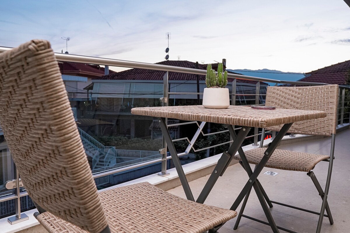 Las habitaciones están equipadas con dos camas individuales, armarios, aire acondicionado y televisión. Cada habitación también tiene su propio baño. Una gran cocina y una sala de estar (ambas habitaciones también tienen aire acondicionado) completan la casa. La gran terraza es el lugar perfecto para pasar una noche acogedora. El alojamiento se encuentra a unos 4 km del centro de la ciudad. Se puede llegar a los lugares de interés circundantes, como los monasterios de Meteora, en aprox. 20 minutos.