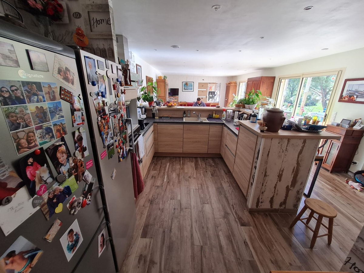Granero independiente completamente renovado de 230 m2 en una aldea familiar de 6 hectáreas entre la tierra y el mar. Terraza y gran patio privado sin vecinos. El granero de las libélulas le permitirá descansar en la tranquilidad del campo mientras disfruta de las infraestructuras comunes de la propiedad. LAS VENTAJAS: Futbolín, billar En la propiedad compartida con las casas de campo presentes en la aldea familiar: - PISCINA CLIMATIZADA y CUBIERTA del 1 de abril al 30 de septiembre - PARQUE