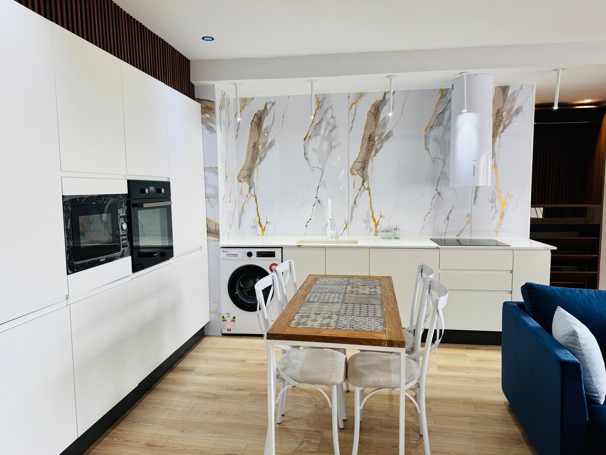 Descubre un lujoso apartamento con vistas al mar en el corazón de la ciudad. Despiértate con vistas panorámicas al Mediterráneo desde dos dormitorios y disfruta de un café en una impresionante terraza con vistas a la costa. Ubicado cerca de La Medina y a pocos minutos en taxi de Port El Kantaoui, este elegante espacio ofrece muebles de alta gama, una cocina bien equipada, wifi, Smart TV y comodidades modernas. Dos dormitorios tamaño king, un baño de estilo italiano y un espacio de trabajo garantizan un refugio urbano perfecto con fácil acceso a cafés, restaurantes y bares.