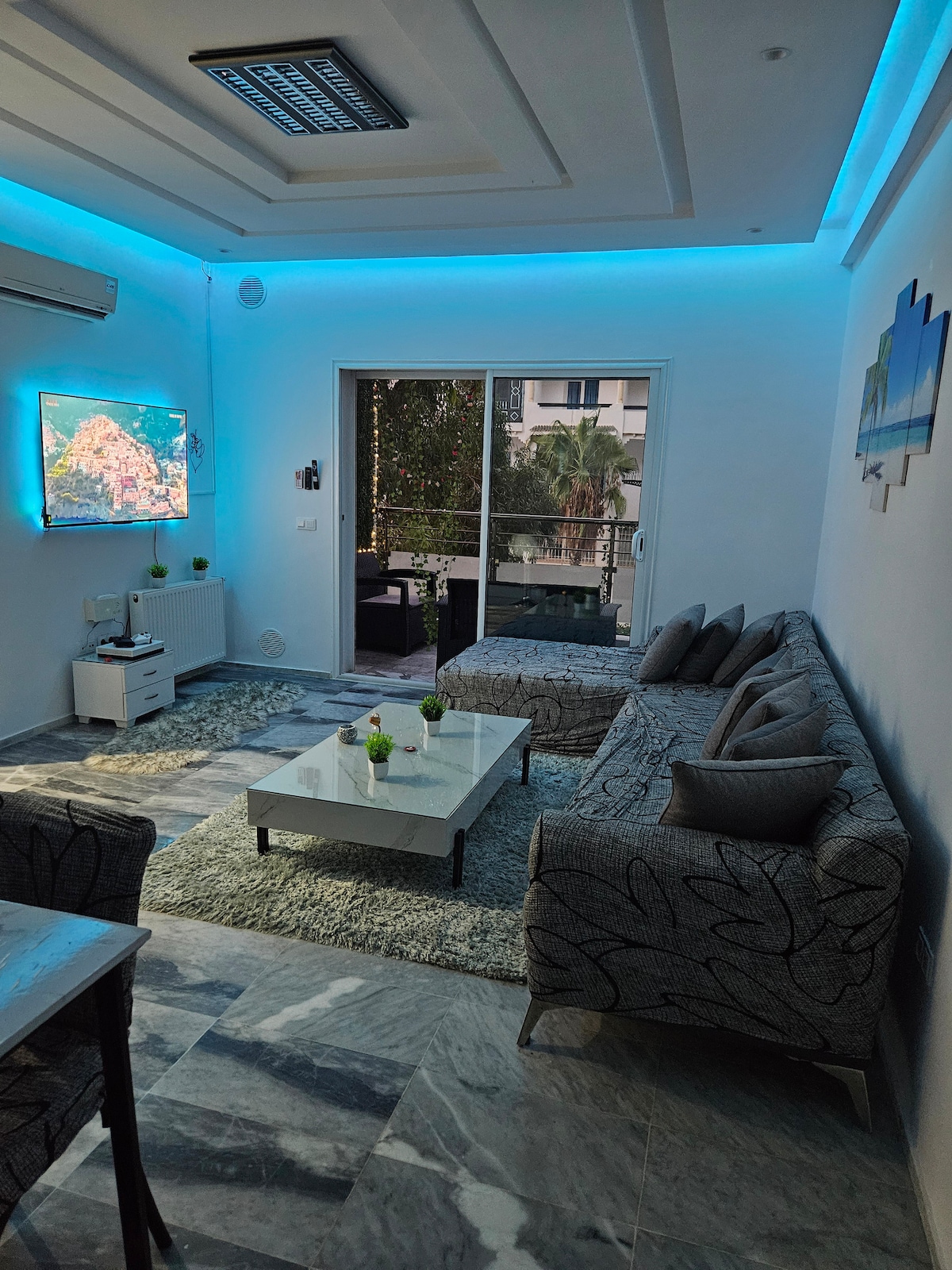Al parecer nuevo a 200 metros de la playa en un edificio de alto standing, un apartamento ofrece un confort de alta gama…tiene una sala de estar con sofá doble Cocina bien equipada..baño con una amplia ducha italiana..una habitación con una cama king size…el apartamento tiene aire acondicionado y tiene calefacción central…un balcón con vistas al mar…y lejos de cualquier molestia. muy cerca de la playa..las discotecas.restaurantes y cafeterías. lo que le da un encanto sin igual