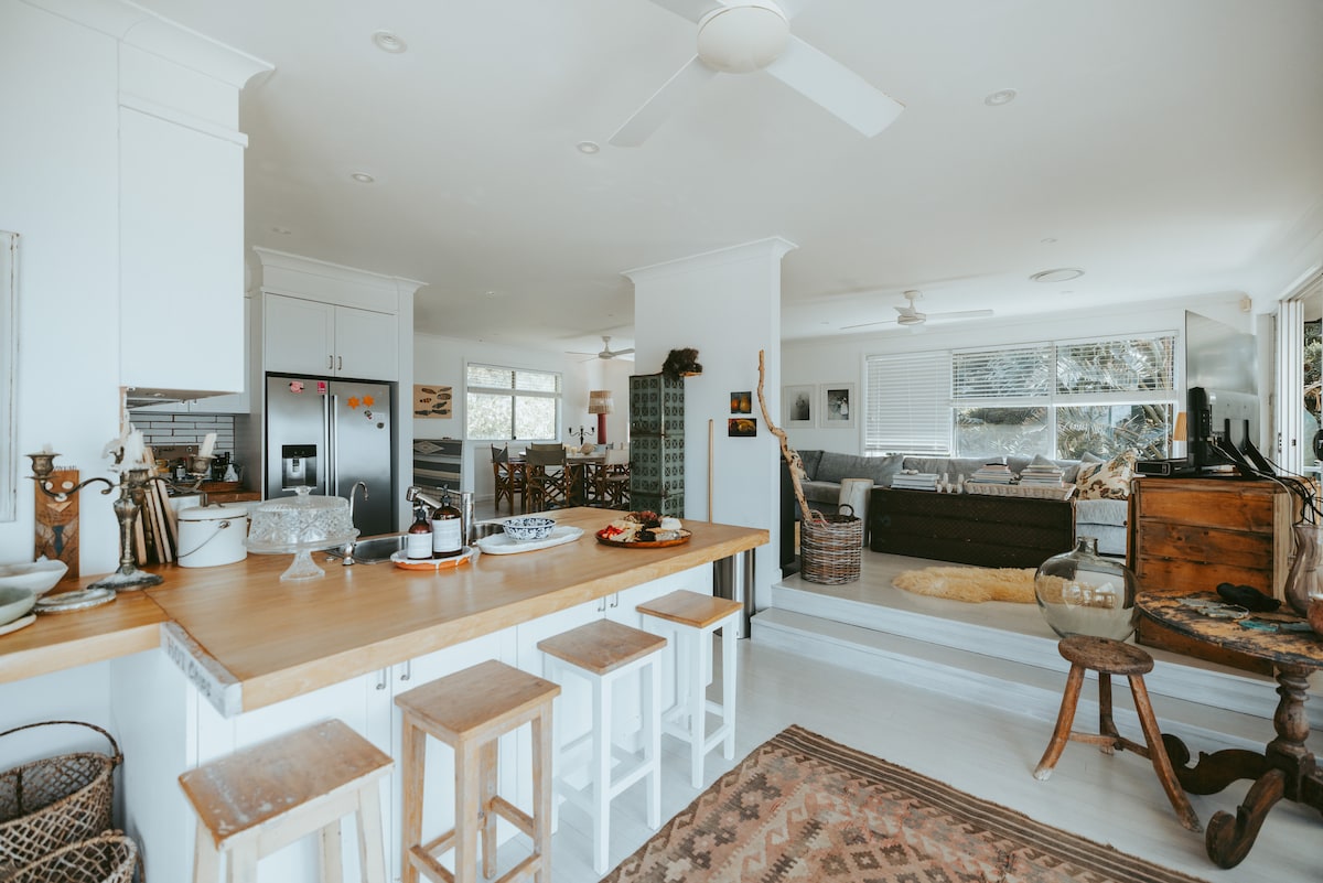 La casa de vacaciones Bannisters Oceanfront es una casa moderna de 3 dormitorios bien equipada con 2 baños, ¡incluido un baño completo y una sauna! La casa está totalmente climatizada para una comodidad durante todo el año. Perfectamente situado a 200 metros de Bannisters, el restaurante Rick Stein y el spa de día. También está a 5 minutos a pie de las tiendas Tallwood y Mollymook Beach. Disfruta de increíbles vistas al mar desde la amplia terraza privada trasera. Cocina totalmente equipada con electrodomésticos y artículos para el hogar de calidad; ¡es una delicia para los artistas!
