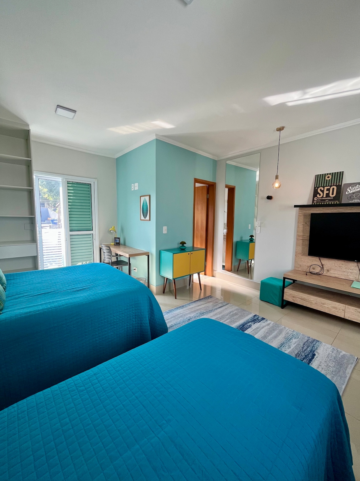 Acogedor y encantador loft para relajarse, trabajar en casa, salir, estar con la familia y sentirse como en casa. Está iluminado con luz natural, proporcionando una vista parcial del mar desde el 4º piso. Situado en la calle Mário Ribeiro, Centro, Guarujá, entre las calles Río de Janeiro y Brasil, todo fácilmente accesible a pie. Estamos a 5 minutos a pie de la playa de Pitangueiras, a 26 minutos de Enseada, a 29 minutos de la playa de Tombo, a 5 minutos del supermercado Jóia, a 14 minutos de Pão de Açúcar y a 12 minutos de Le's Coffe Café.