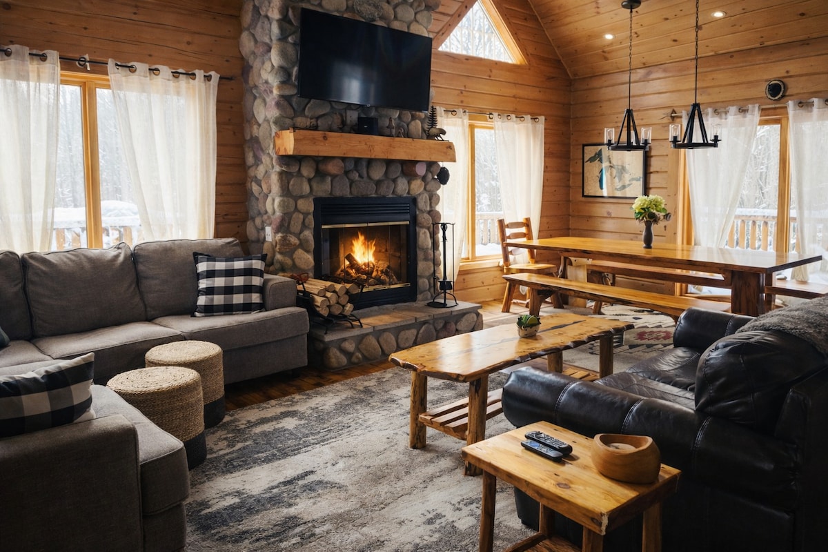 Cabaña de troncos moderna con jacuzzi cerca del lago Míchigan