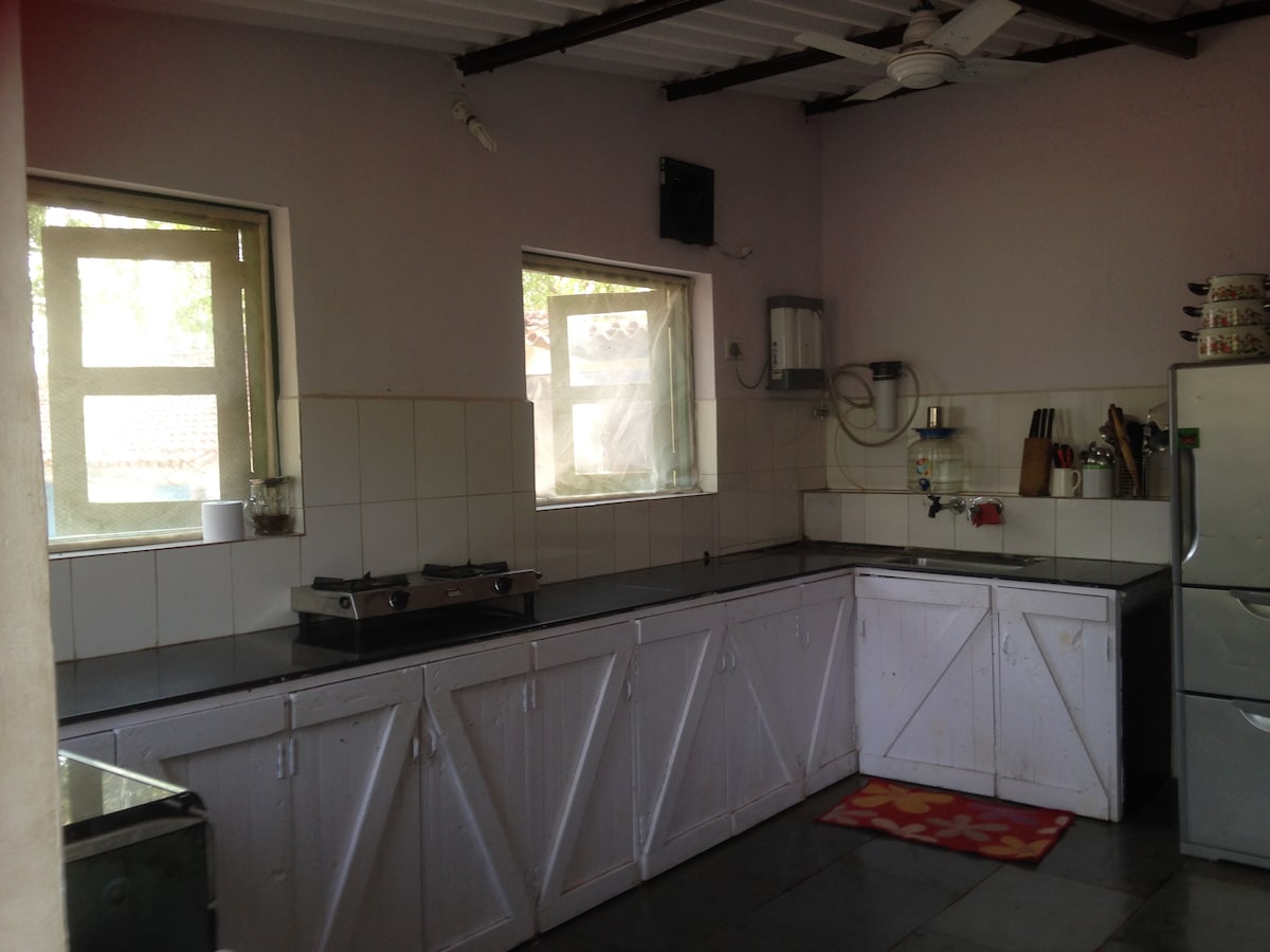 Una casa de pueblo de estilo malnad, rodeada de unas vistas esplendidas y un río que atraviesa las granjas. Enormes cascadas y exuberantes arrozales verdes. Mi casa está a 200 metros de la hermosa cascada Kadamagundi y el río corre justo al lado de mi casa. Siempre se puede escuchar agua brotando en el río. También alberga varios pájaros Ghat occidentales. Puedes oír aves durante todo el día. El clima es cálido y húmedo en verano. Viento y fresco en invierno. Sus lluvias son la mayoría de los días en estaciones de lluvia.