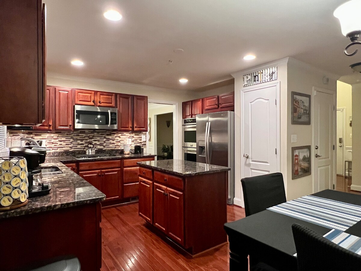 Este espacioso departamento de lujo de 1500 pies cuadrados se encuentra en el nivel inferior de una casa privada personalizada. NO HVAC COMPARTIDO. Dormitorios soleados e iluminados con acabados y decoración de primera categoría. Entrada privada y pasarela, porche cubierto y aparcamiento gratuito en el lugar para 2 coches. Ubicación privilegiada de Bethesda: a 1 milla de NIH y Naval Medical con transporte público justo fuera de la puerta de entrada. El autobús 47 (gratuito) tarda 10 minutos en llegar a la estación de metro de Bethesda (línea roja) o en la dirección opuesta al centro comercial Montgomery.
