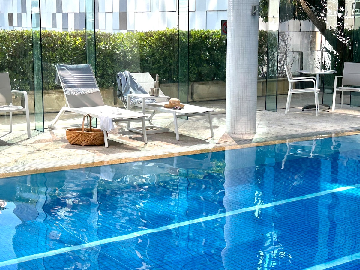 Experience the epitome of luxury living in this stunning 65m2 apartment, perfectly situated in the Paris end of Melbourne. Enjoy breathtaking city views from the comfort of your private residence, complete with a spacious lounge room featuring a leather chaise lounge and 3-seat leather couch. The modern dining table seats two, perfect for intimate gatherings. Enjoy a walk in marble shower in closure and Bathroom with LED makeup lighting. Pool is Heated all year round and the best in Melbourne.