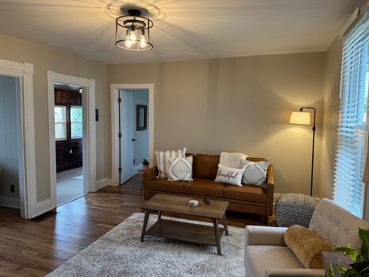 En la planta superior de esta casa centenaria hay un tranquilo apartamento de 2 dormitorios para relajarse, descansar y disfrutar de una pequeña escapada. Tu apartamento tendrá una entrada privada y aparcamiento en la calle. Puedes disfrutar de la chimenea y comer fuera en la terraza compartida. Muy cerca se encuentra CedarCliff Falls, donde te esperan hermosas cascadas y senderismo; un carril bici pavimentado se extiende por millas en ambas direcciones y a tres manzanas de la Universidad de Cedarville. ¡Esperamos que tu estancia te refresque y te reavive!