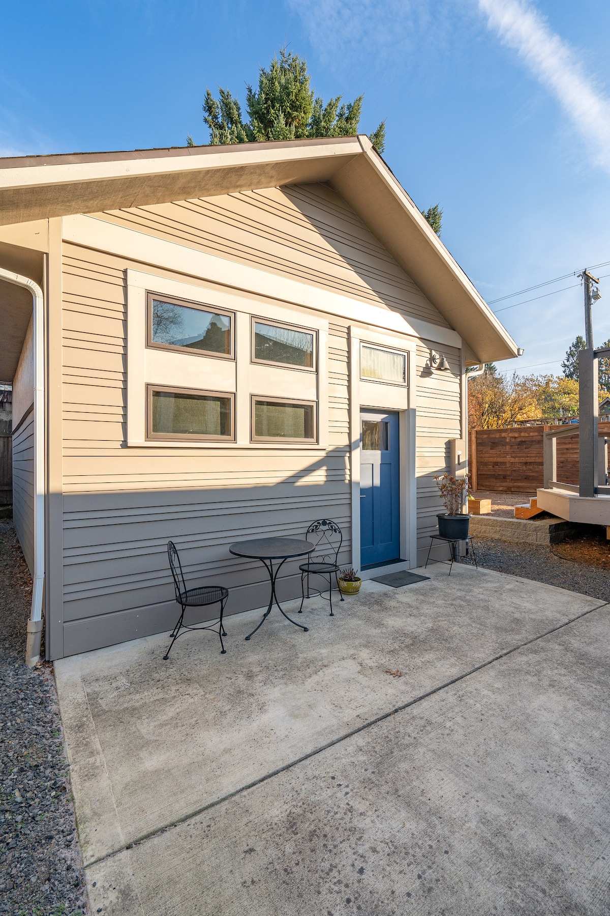 La casa de huéspedes ofrece llegada autónoma. Está en un vecindario tranquilo en el sureste de Portland. Los techos altos hacen que este estudio sea espacioso y luminoso. Creemos que es una habitación de hotel perfecta sin el hotel. La pequeña cocina de cocina tiene todo lo necesario para cocinar una comida gourmet, incluida el agua filtrada. Hay un baño completo con bañera y ducha. La cabaña se encuentra por sí sola, por lo que es perfecta para ir y venir como quieras. Permiso de la Ciudad de Portland n.º24 013532