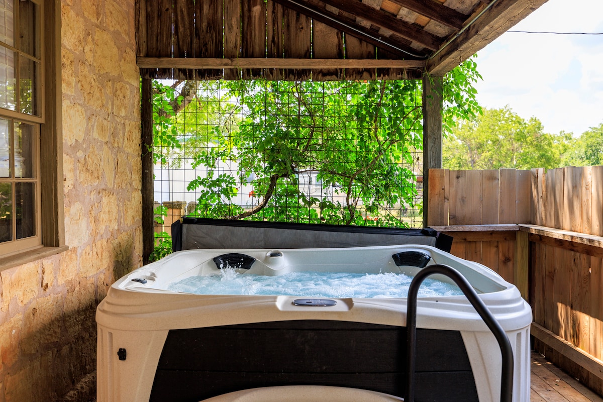 Baron 's Creek Cabin recuerda a una casa de campo que se encuentra en la campiña francesa. Este pintoresco bungalow es perfecto para una escapada romántica para dos en la región vinícola. Disfruta del camino adoquinado a través de la puerta principal de la cabaña para descubrir un interior que recuerda a una época pasada. Las paredes de roca expuestas y los techos de vigas de madera agregan un encanto auténtico. Disfruta del ambiente acogedor en la pintoresca sala de estar, que cuenta con una cálida chimenea (uso sesonal). La cocina rústica ofrece una mininevera y un microondas