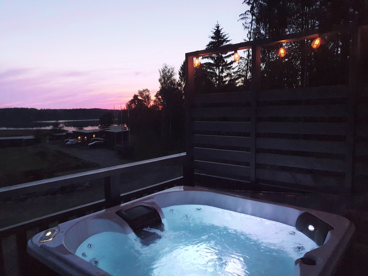 Modern tiny cabin with a great sauna and hot tub on the patio. Accommodates nicely four persons in comfortable beds. Direct access to sea and a small boat for your use. In case you want to fish, you can rent fishing gear and even a fishing guide from the host. Using the hot tub has to be agreed and paid separately at the time of reservation (100€). Tub will be filled and it will be in your use for the entire stay. Cleaning fee (50€) includes sheets and towels for four persons.