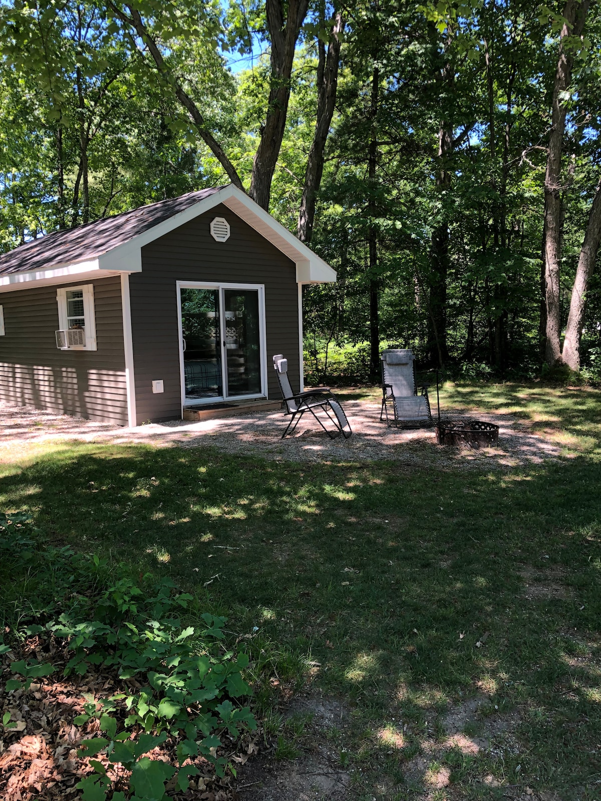 Welcome to our private Tiny Villa! It is completely stocked with dishes, cookware, gas grill, beach chairs, towels, wifi, fire pit etc… Tucked away overlooking the pond, it’s a perfect place to relax after a day of activity. An easy 20 minutes to Traverse City where you can go to the beach, shop or enjoy many excellent restaurants. Firewood available on site & have the following to RENT: Pontoon, kayaks, & paddle boards ( Contact H2O Sports Rentals to book these items or message us)