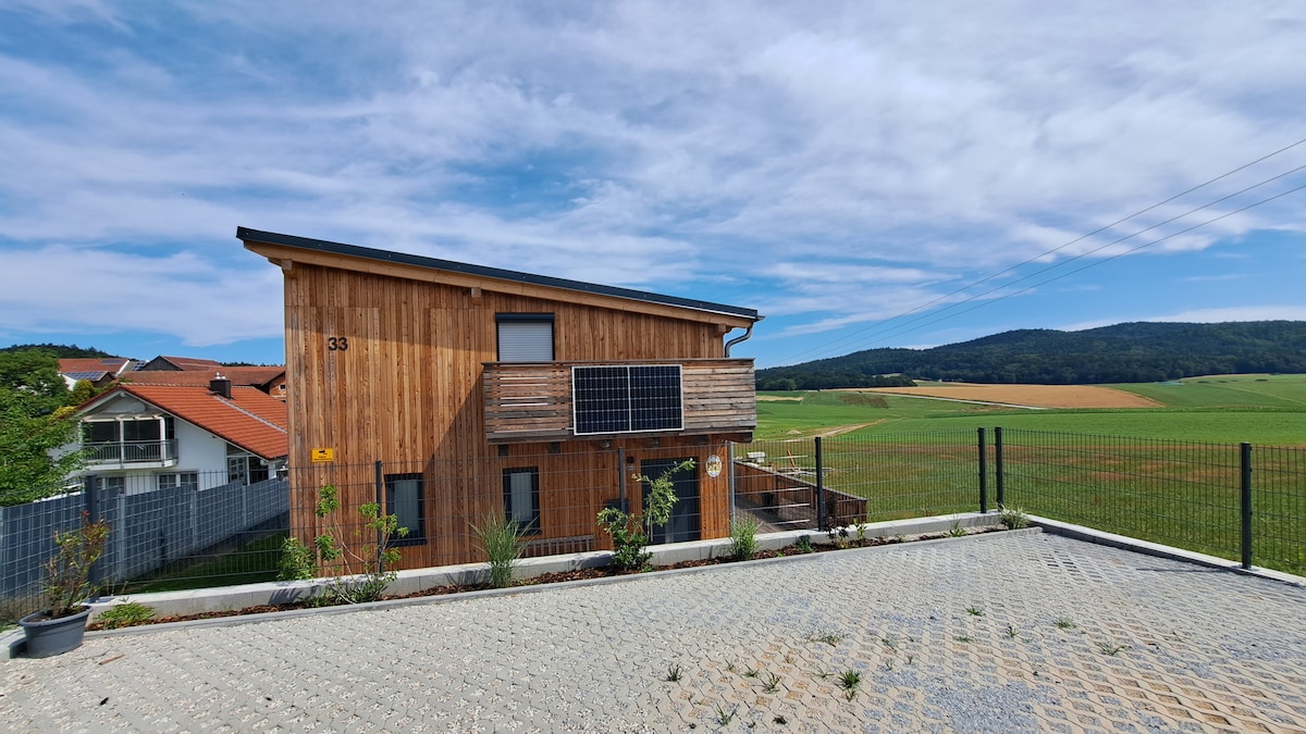 «D'Unterkunft»: casa de madera para vacaciones en el bosque bávaro