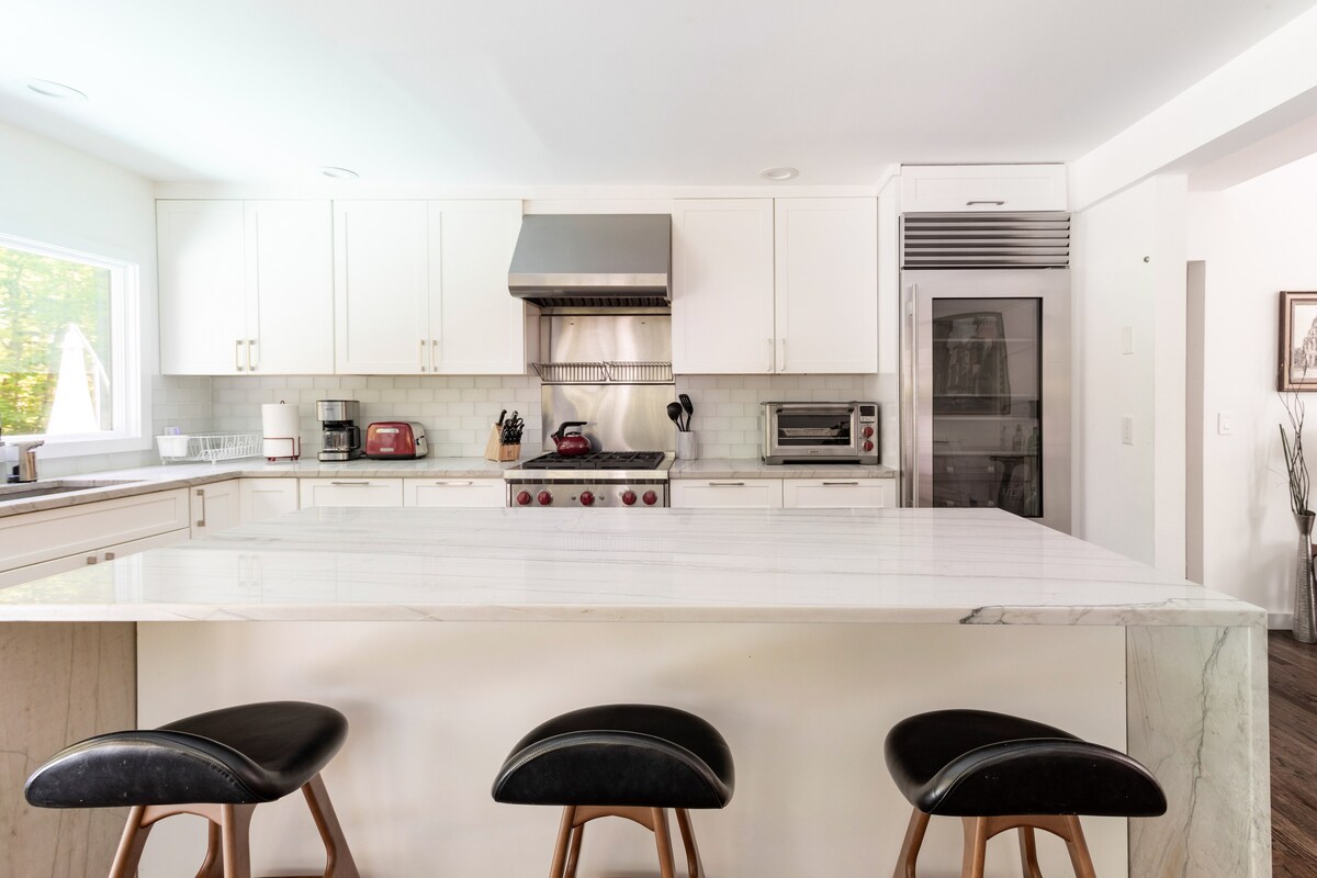 ¡Escápate a tu oasis privado y sereno en Hamptons! A solo 1 cuadra del agua y a 8 minutos de Main Street. Disfruta de tu gran piscina, barbacoa, fogata, cocina del chef y decoración elegante en toda la casa. Acurrúcate junto a la chimenea de leña + 80' de televisión en streaming. El lugar perfecto para relajarse, crear recuerdos y reunirse. Estarás a 1 cuadra de los mejores restaurantes frente al agua en la zona + cafetería frente al agua. Pasea para tomar café, cócteles y cenar con las mejores puestas de sol. Estarás a 8 minutos de las playas, Main St., tiendas y más.