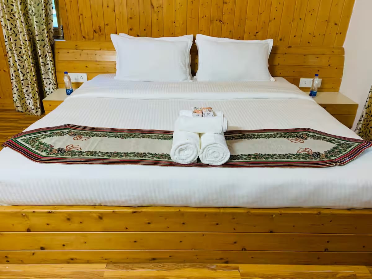 Spacious guest house in Kashmir featuring 4 king-size bedrooms and a luxurious suite, each with private bathroom, smart TV, Wi-Fi, and coffee maker. Guests can book the entire home for exclusive use or choose individual rooms for a cozy stay. Relax in the shared lounge, dining area, or serene garden, perfect for enjoying fresh mountain air. Ideal for families, groups, or solo travelers seeking comfort, convenience, and a peaceful retreat in a stunning natural setting.