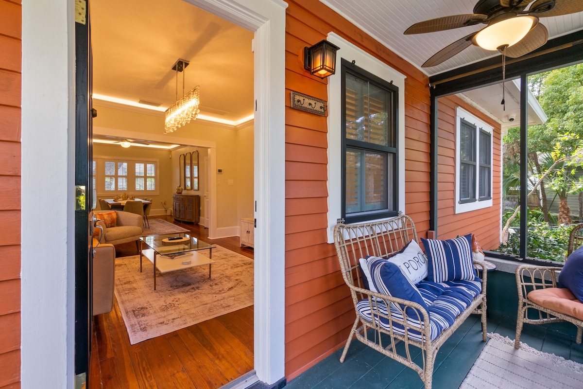 Stunningly renovated cottage combines modern amenities with vintage charm... * 2 master suites with queen beds * Quiet neighborhood walking distance to explore The Nation's Oldest City * Clawfoot tubs inside and out (along with showers, of course!) * Big screened-in porch with hanging daybed * Off-street paved parking * Fully fenced backyard, Weber grill, gas fire pit * Fast Wi-Fi and Smart TV * 2 blocks to Fish Camp, Ice Plant, LaNuvelle, trolley stop * 10 minute walk to central downtown