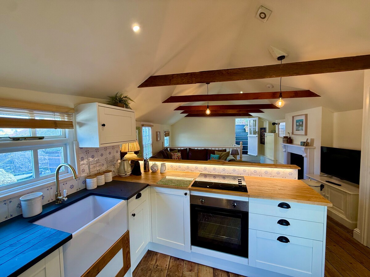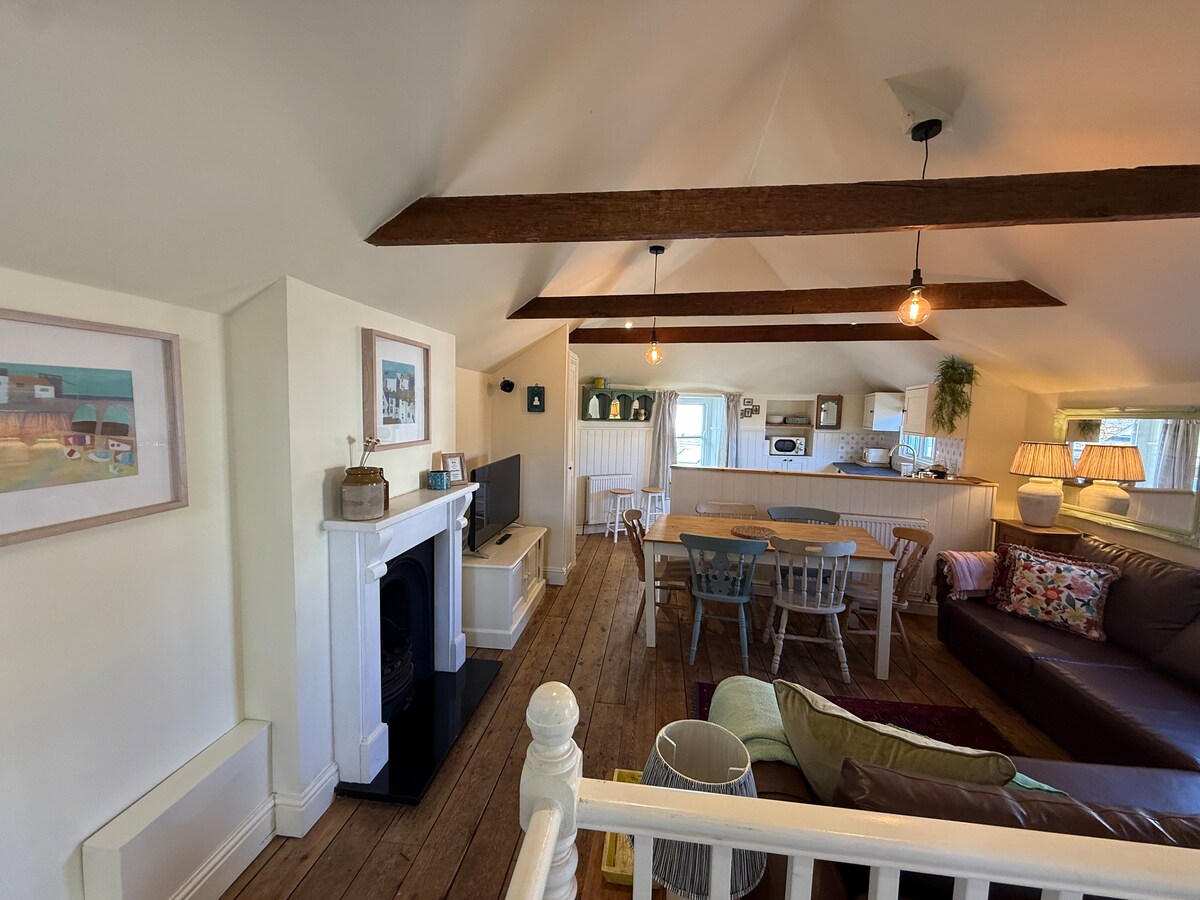Fantástico ático de lujo de alta especificación. Las puertas plegables se abren desde la cocina/sala de estar a un balcón privado orientado al sur. La planta baja se abre a una terraza con escalones que conducen a un jardín privado. Cocina moderna totalmente equipada y sala de estar con estufa de leña. Tres dormitorios: dormitorio principal tamaño king, vestidor, dormitorio doble y una pequeña habitación doble con ducha privada. Baño de lujo con ducha a ras de suelo con efecto selva tropical. Jacuzzi (mensaje para tarifa). Fibra superrápida. Aparcamiento. Barbacoa. Se admiten perros.