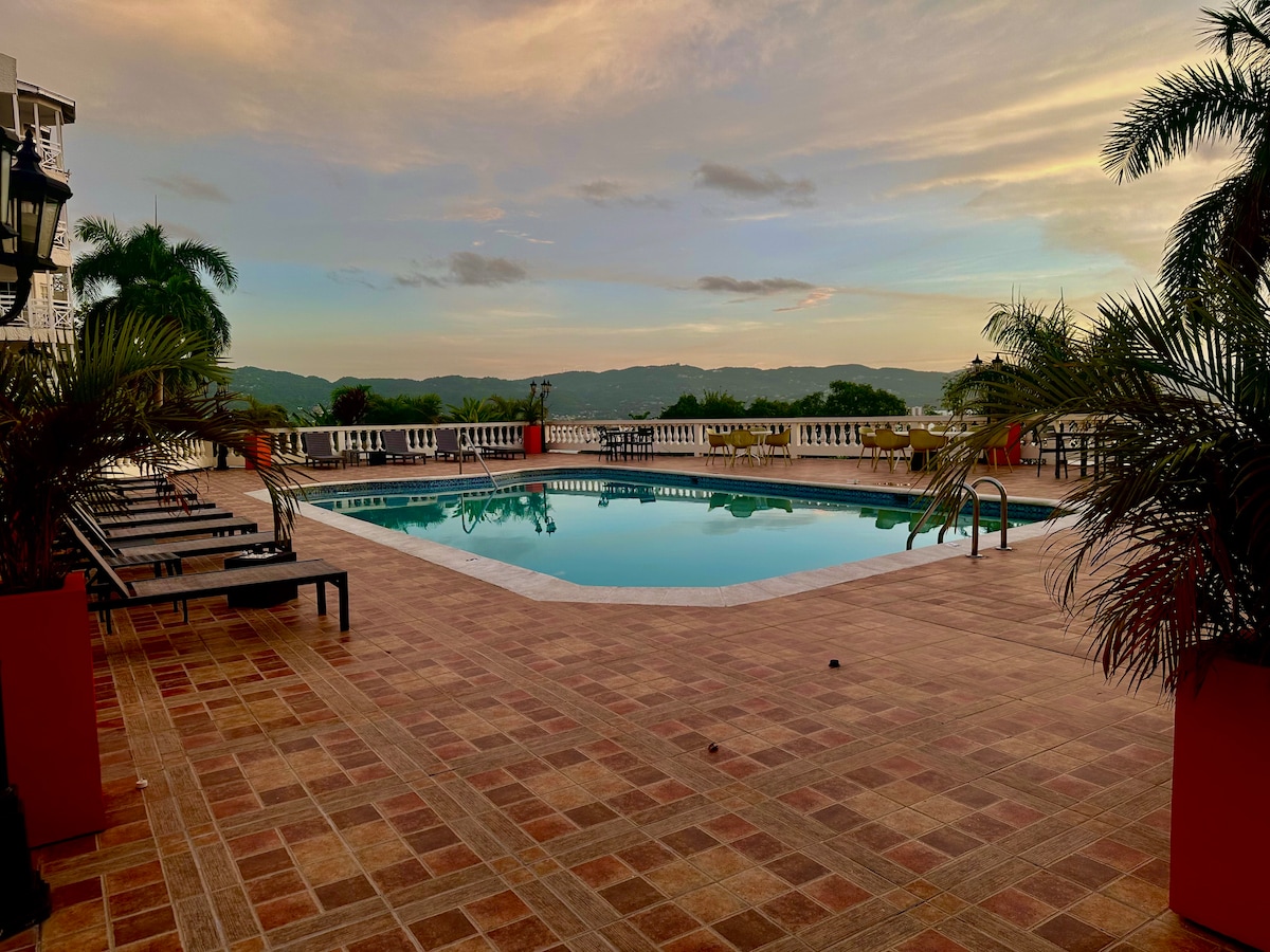 Ubicado en una tranquila comunidad cerrada en The Queen 's Drive (Top Road) a solo 5 minutos en auto del aeropuerto y a 0,5 millas de la intersección de Downtown Mobay KFC y Bottom Road (Hip Strip), nuestro apartamento de 2 dormitorios es el lugar perfecto para tu viaje a Mobay. Nuestro 2b/2ba ofrece impresionantes vistas de la ciudad, el mar y la piscina de nuestro complejo. Sumérgete con las toallas de piscina que se proporcionan para las estadías de más de 1 noche. Despiértate con una taza de café o té de cortesía y aperitivos locales. ¡Pregunte por grupos de más de 5 personas!