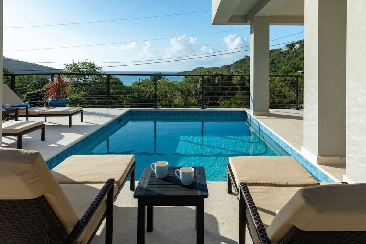 Huis Aan Zee, “House by the Sea”, offers the perfect Caribbean getaway. Relax in your own private saltwater pool overlooking the turquoise waters of Coral Bay. This modern villa offers breathtaking views of Hurricane Hole and Drake’s Channel, blending seclusion, comfort, and convenience! *Lounge on sun chairs, soak in the pool *Enjoy AC + a fully equipped chef’s kitchen *High-speed Wi-Fi + peaceful work area for remote stays *Located minutes from St. John’s beaches, grocery stores, restaurants
