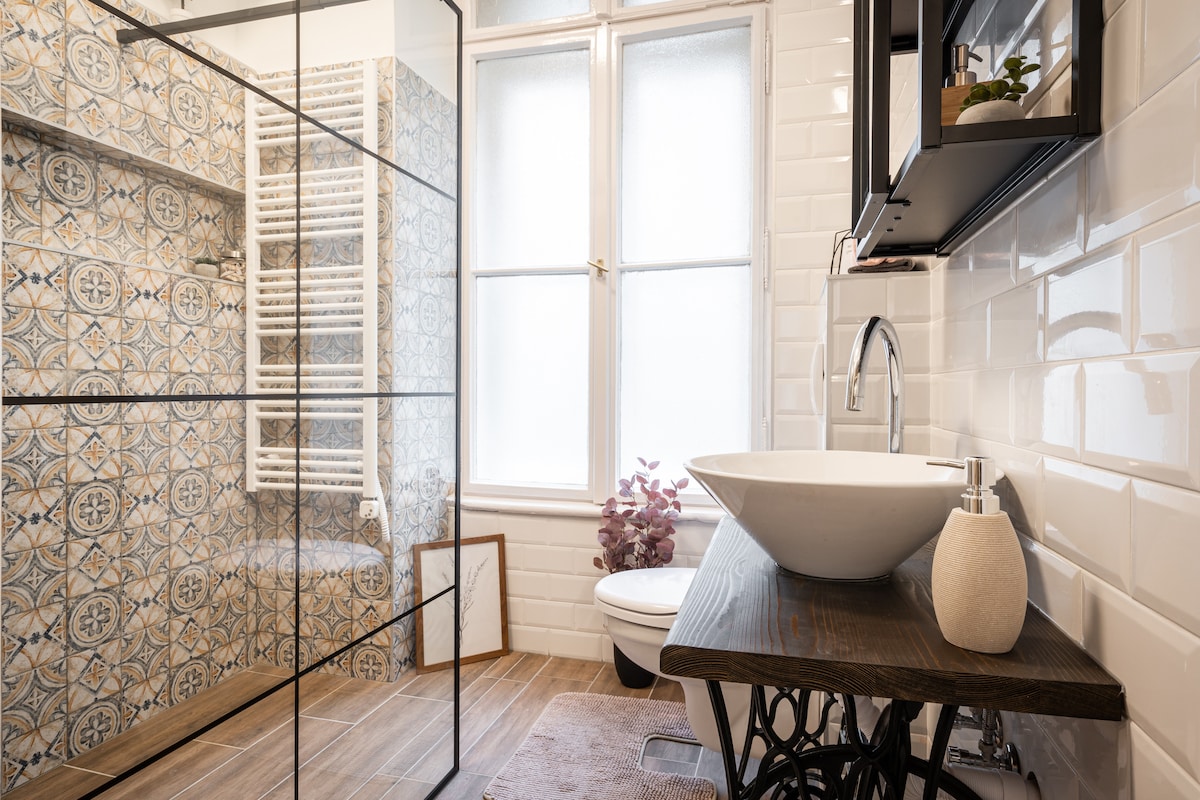 This romantic flat with vintage charm is located in district 5, the most historical district of Budapest, famous for its beautiful sightseeing, great restaurants and ruin pubs. St. Stephen's Basilica is right around the corner. We’re not just in the city center, we’re in the heart of it. Perfect location, fun place to stay. Facing an inner garden, this flat also provides you a peaceful space and a good night’s sleep. It’s a perfect base for couples and friends to explore the city.