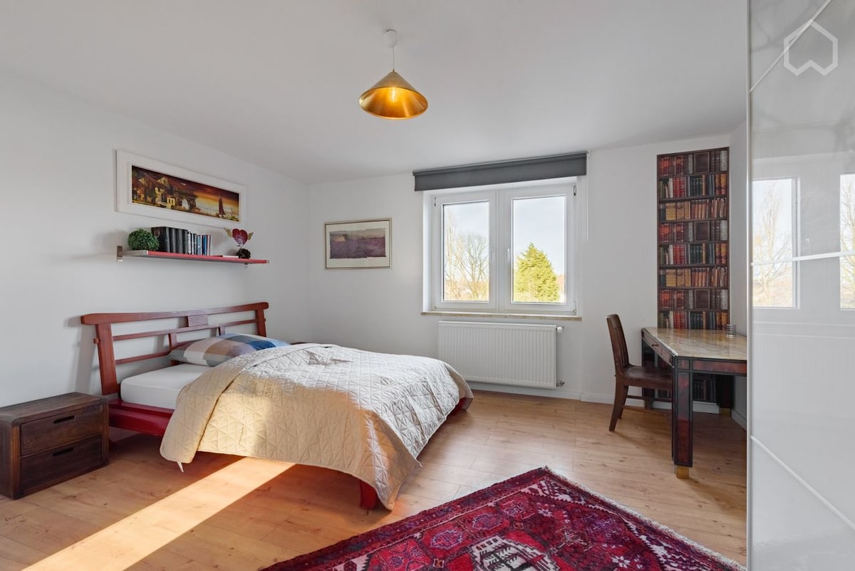 Bienvenido a este cómodo apartamento en nuestra casa privada en Ratingen junto al norte de Dusseldorf. La gran habitación está equipada con 2 camas y un sofá cama, cocina, baño y una terraza con vistas al enorme jardín. Tiene capacidad para 2 personas, en excepciones para 3 personas. No dudes en ponerte en contacto con nosotros. El alojamiento de más personas es posible en otra casa dentro de un rango de 300 m. Ten en cuenta que el aeropuerto está bastante cerca.