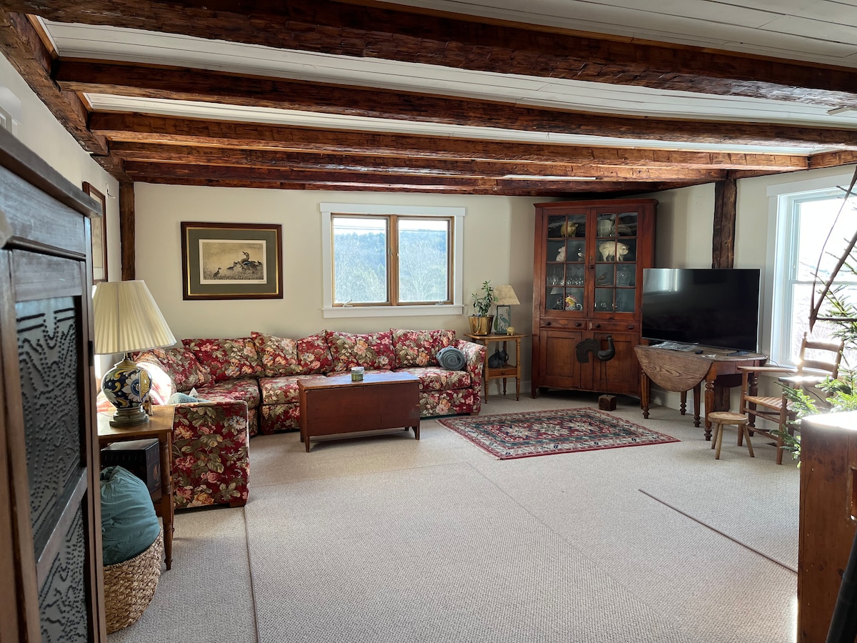 Near Ski & restaurants! 4 bedroom apartment tucked away on a hilltop oasis above Mass MoCA (3 mins by foot). 10 mins drive to Williams College & Clark. Whimsically restored (fast Wi-Fi & great water pressure). Fully private with no shared spaces + outdoor Sauna! Your stay’s proceeds allow us to host refugee/immigrant musicians pro bono year-round at @chasehillartistretreat Note: more dates are often available beyond what the calendar shows. Please don’t hesitate to inquire!