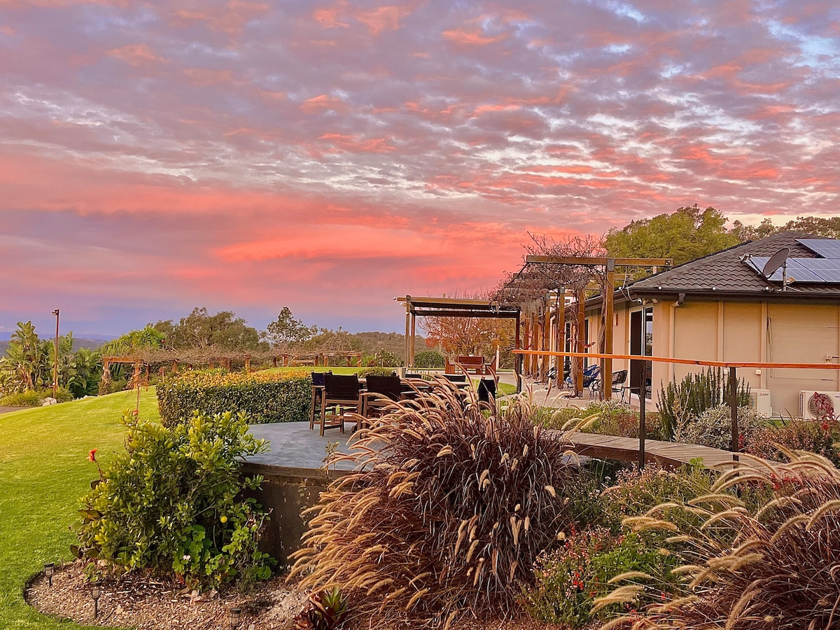 Up & Away en Braeside Mountain, a 857 metros sobre el nivel del mar, es el punto más alto entre Toowoomba y The Summit. Ofrece espectaculares vistas panorámicas de 180 grados de toda la región de Southern Downs. Relájate, disfruta del vino junto a la chimenea, sumérgete en la piscina/spa de agua salada infinita, haz pizzas en el horno de pizza al aire libre o explora los numerosos jardines. Situado a solo 20 minutos de Warwick y a menos de 30 minutos de muchas bodegas, lugares turísticos y parques nacionales de la región de Granite Belt.