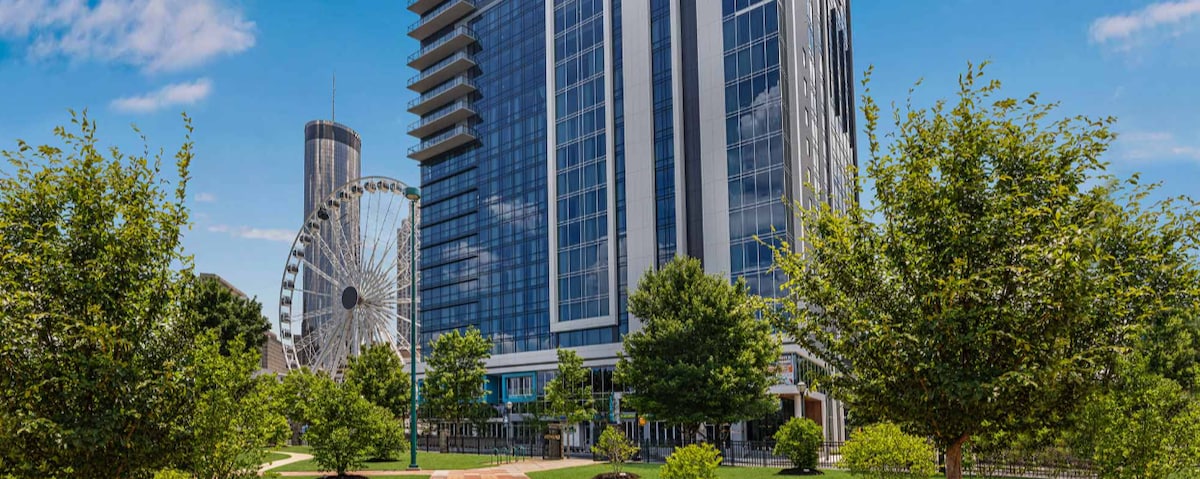 Experience Atlanta in style at this modern studio just steps from Mercedes-Benz Stadium, State Farm Arena, and Centennial Park! Located in the exclusive Wyndham Margaritaville tower, this chic space sleeps up to 4 with a plush king bed and queen sofa sleeper. Enjoy a kitchenette, a sleek bath, and resort-style perks—rooftop pool with skyline views, on-site dining, fitness center, and a rooftop bar perfect for sunset cocktails. Walk everywhere, relax in comfort, and make your ATL stay memorable!