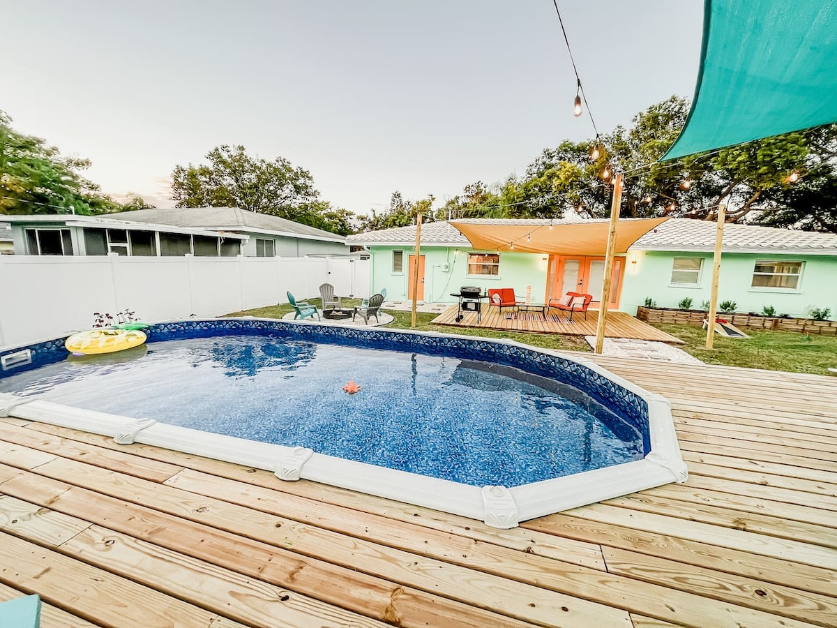 Fun, Funky, Pool, Fire Pit! 4 miles to Beach
