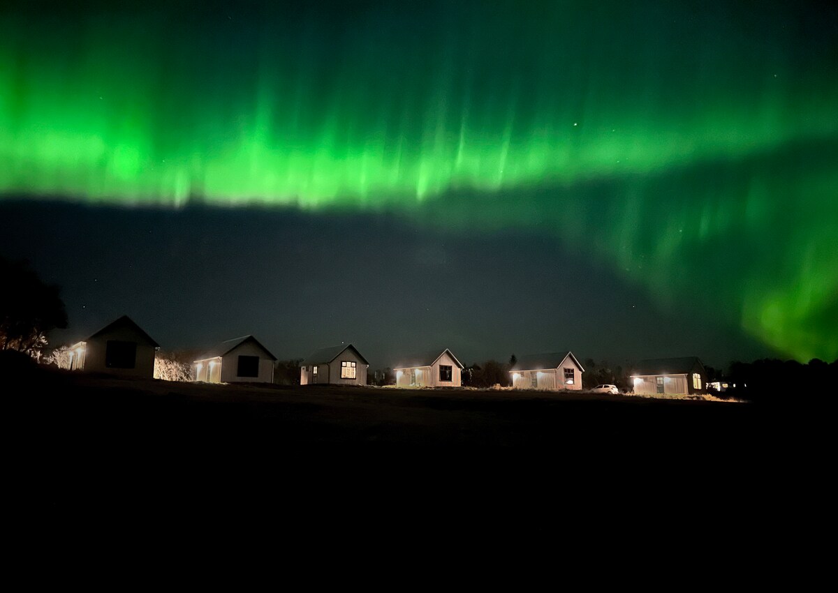 Las casas de lujo Svartaborg se encuentran en un valle hermoso, muy tranquilo y remoto en el norte de Islandia. Las casas se encuentran en una montaña y todas tienen unas vistas magníficas. La ubicación es perfecta para visitar los lugares más populares del noreste de Islandia, hacer excursiones de un día a todos estos sitios es ideal. Las casas que se construyeron en 2020 tienen un ambiente de lujo único, diseñadas por los propietarios para que tu estadía sea lo más cómoda posible. Un lugar único en el norte e ideal para contemplar las auroras boreales.