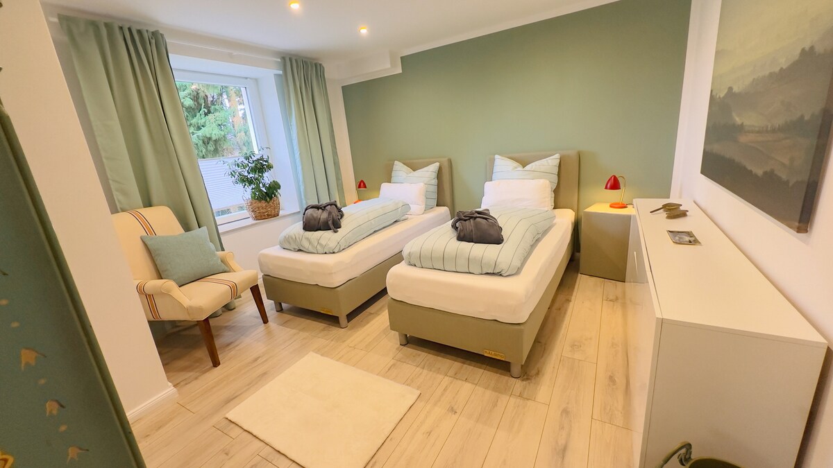 El moderno apartamento de alta calidad en una zona tranquila, convence por su concepto de vida de estudio abierto con cocina completamente equipada, WC+urinario separado y un baño de tamaño generoso con ducha a ras de suelo, vestidor y una oficina que se puede utilizar como dormitorio adicional. Hay un aparcamiento en la casa. La ubicación es perfecta para practicar senderismo y ciclismo en la región de Voreifel. Gracias a la buena conexión con la autopista, se puede llegar a Aquisgrán en unos 20 minutos.