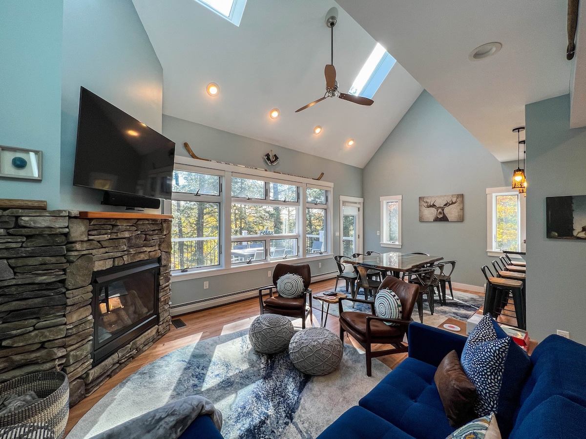 Entra en un paraíso invernal en las Montañas Blancas. Las rutas de senderismo de invierno están justo al otro lado de la calle, con una tranquila ruta fluvial cerca, perfecta para paseos nevados o esquí de fondo. Visita el icónico puente cubierto de Jackson y las cascadas congeladas, o disfruta de Story Land, North Conway, esquí, raquetas de nieve y más a pocos minutos de distancia. Después de un día de aventura, relájate junto a la chimenea o en la terraza y contempla las vistas nocturnas de los preparadores de pistas que escalan Attitash. ¡Ubicación perfecta para todo lo relacionado con el invierno!