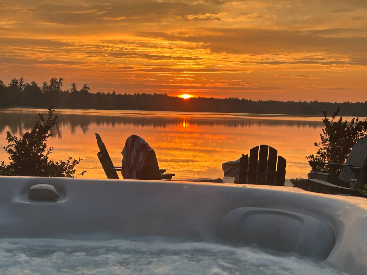 Escápate a un refugio tranquilo junto al lago con una terraza aislada iluminada por el sol y un muelle privado con increíbles vistas del lago Sunrise, además de una bañera de hidromasaje para 4 personas y servicios de temporada como un bote a pedales, dos kayaks, una tabla de surf de REMO, mesa de fuego de gas, aire acondicionado central, una estufa de pellets y raquetas de nieve. Disfruta de actividades cercanas como senderismo, contemplación de las hojas, esquí y visita a ciudades pintorescas, viñedos y cervecerías locales, o simplemente relájate en un hermoso entorno frente al lago. ¡Las puestas de sol pueden ser increíbles!