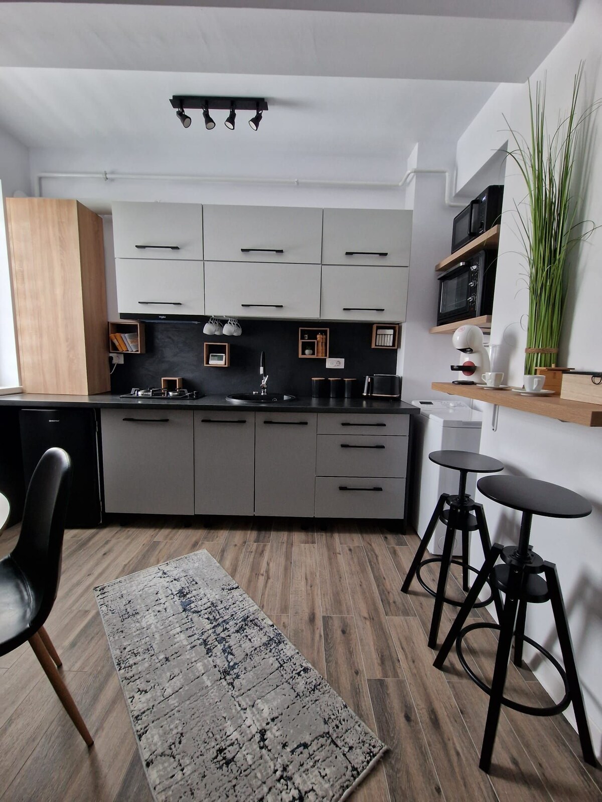 Apartament de lux în Suceava • La doar 6 km de aeroport • Pat king-size + canapea extensibilă mare • Bucătărie: espressor, cuptor, plită, frigider, microunde, prăjitor, veselă nouă • TV mare + sunet surround • Wi-Fi, aer condiționat, video interfon • Mașină de spălat cu uscător, fier de călcat • Baie cu produse premium, uscător de păr, prosoape moi • Check-in flexibil, inclusiv noaptea • Parcare gratuită, supravegheată • Confort, stil și tot ce ai nevoie pentru un sejur perfect