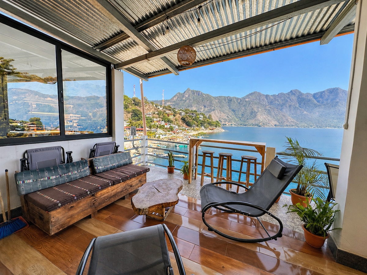 Contempla la belleza del Lago Atitlan y sus montañas mientras te relajas en un rincón acogedor junto a la ventana. Éste airbnb está situado en el centro de la zona turística por lo cual tendrás muchísimas opciones para disfrutar de buenos restaurantes, bares, vida nocturna, tiendas, servicios turísticos de recreación y exploración de la cultura local, transportes terrestres o lacustres para conocer los hermosos pueblos al rededor del Lago, eso y muchas cosas más...