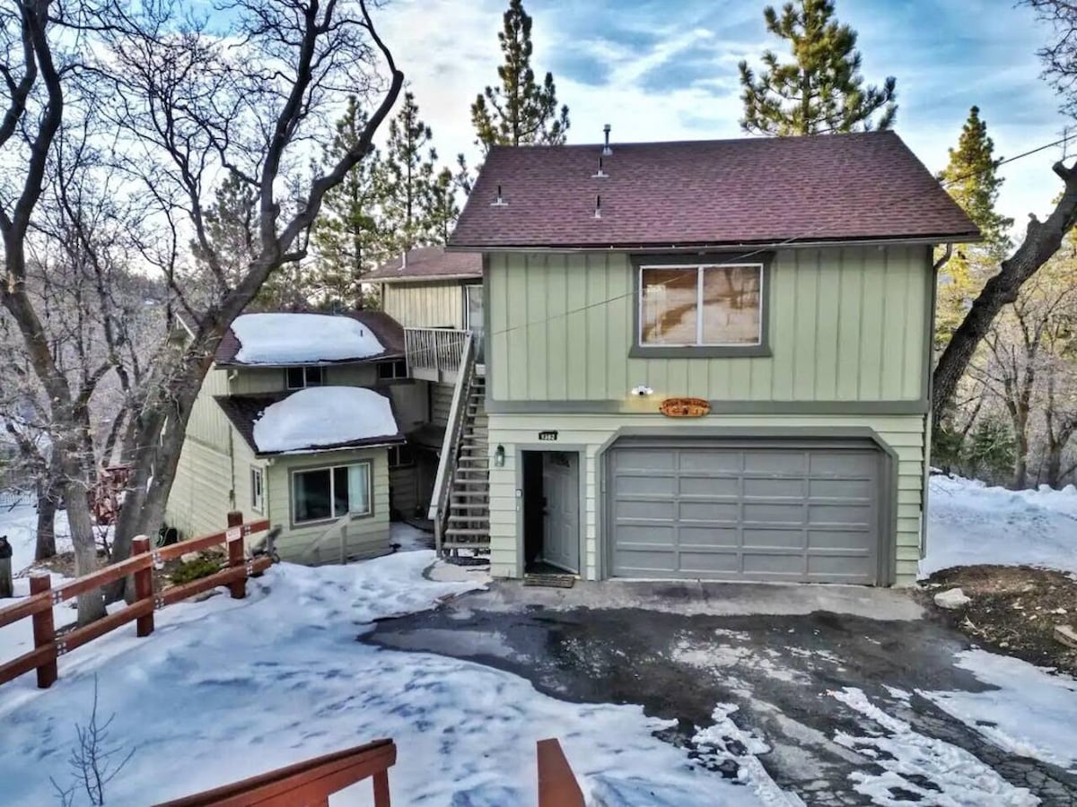 Bienvenido a nuestra encantadora cabaña de un solo piso, ¡perfecta para familias y jóvenes aventureros! Ubicado a solo 3–4 minutos de Snow Summit y Bear Mountain, nuestro acogedor refugio ofrece fácil acceso a lanzaderas gratuitas para que puedas evitar la molestia de conducir. Estarás a pocos minutos del lago, el pueblo, las tiendas de comestibles y los restaurantes. Disfruta de un paseo relajante a la cafetería, el campo de golf, el zoológico y los senderos forestales. ¡Aventura y comodidad te esperan!