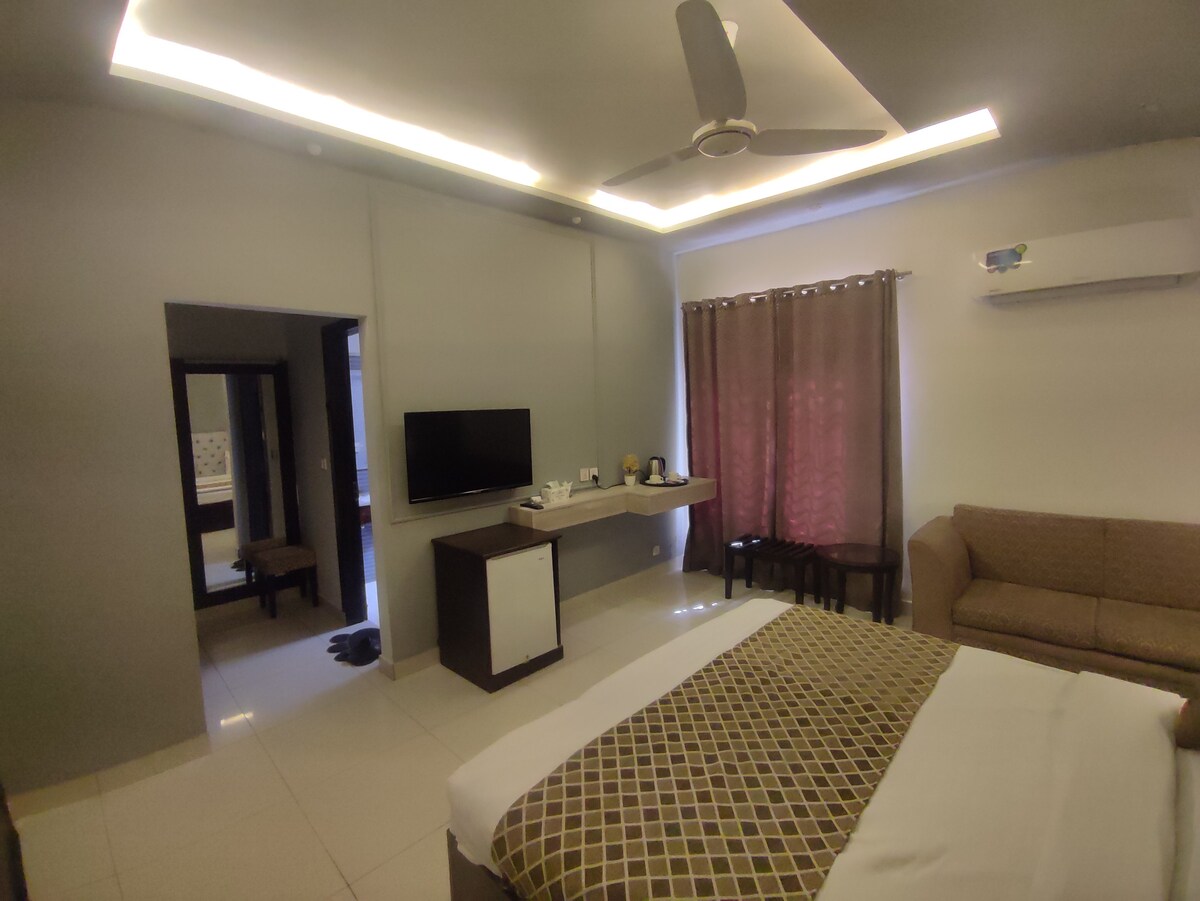 Relax with the whole family at this peaceful place to stay. Includes Massager, Heater, Geyser. Spacious terrace and rooftop for therapeutic time