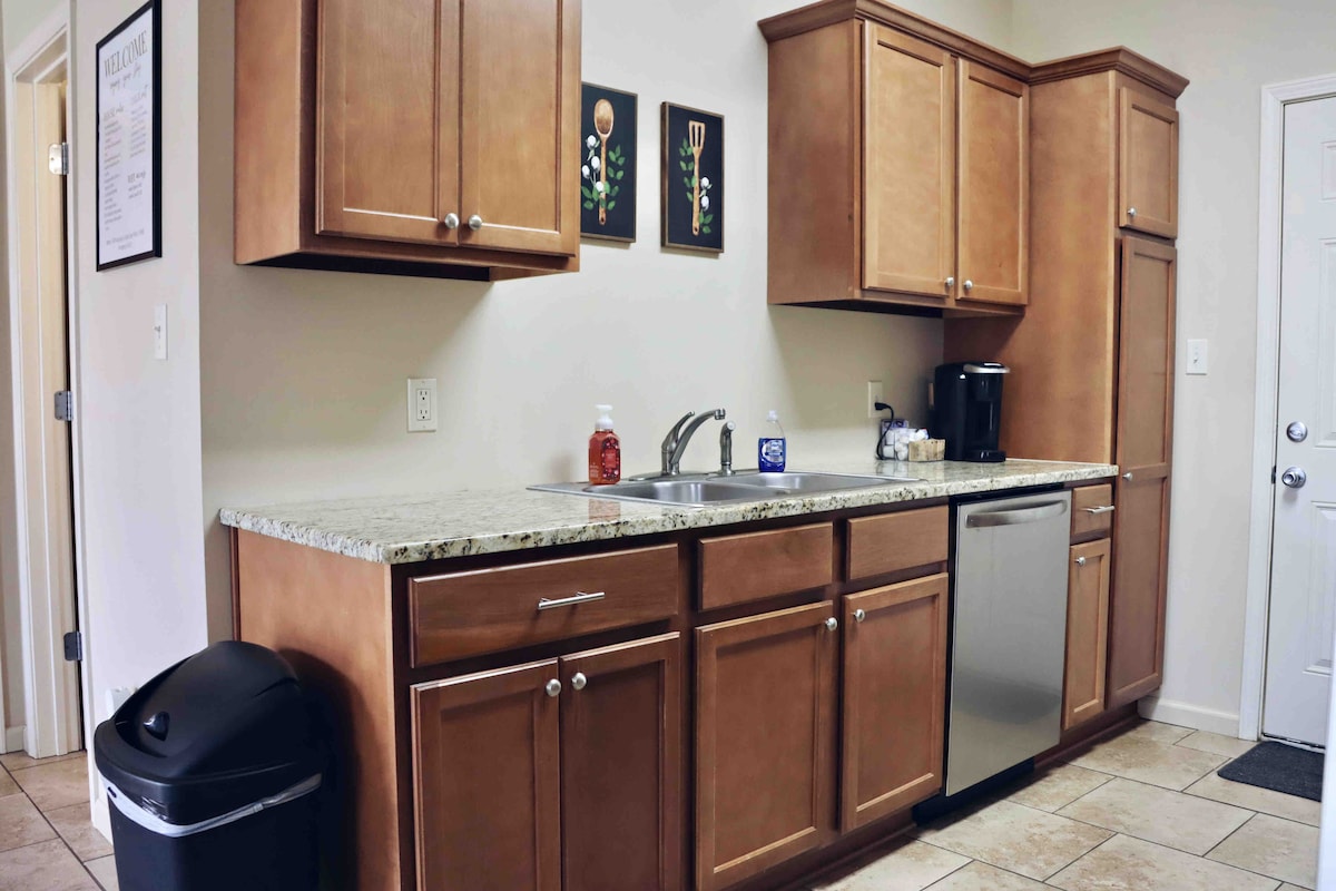 ¡Este apartamento único lo tiene todo! Situado en el distrito histórico, a pocos pasos de las rutas de desfile y del centro de la ciudad, cuenta con artistas locales, jabón y loción hechos a mano, un tocadiscos con álbumes de colección de áreas cercanas y un diseño único. ¡Totalmente remodelado teniendo en cuenta tus necesidades y deseos! Sumérgete en la cultura local en esta combinación perfecta de comodidad y creatividad. Experimenta plenamente el encanto de Lake Charles. ¡Esperamos que te encanten todos los detalles que hemos proporcionado aquí!