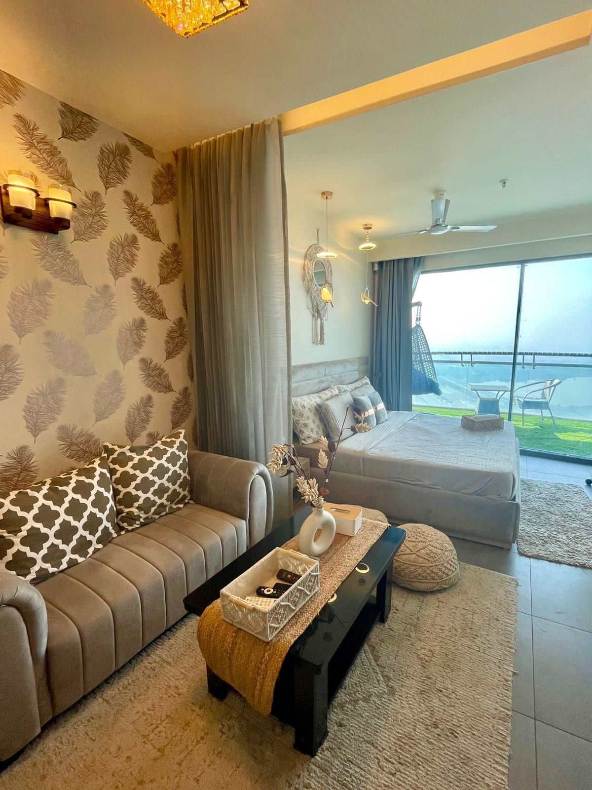 Welcome to The Beige Haven a refined luxury studio located on the 30th floor, offering a calm, elegant space with beautiful skyline views Designed in soft beige tones, this studio is perfect for guests who appreciate comfort, privacy, and a peaceful high-rise stay Large windows fill the studio with natural light, while the thoughtfully curated interiors create a warm and relaxing atmosphere. Whether you are visiting for work or leisure, this space offers the ideal blend of style and convenience