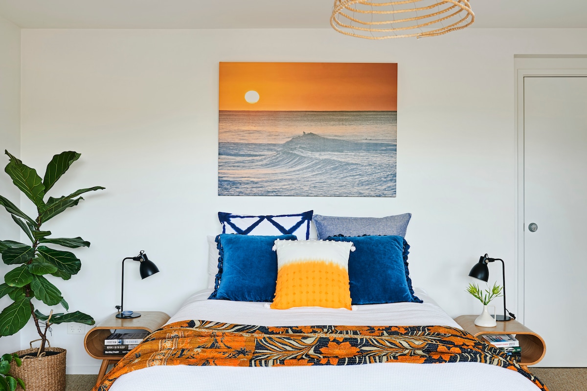 Duerme con el sonido relajante del océano en esta propiedad tranquila, construida especialmente para parejas. El colorido interior incluye muchos toques costeros, mientras que el jardín nativo cuenta con una zona de estar cubierta con silla colgante. A diferencia de muchos otros anuncios, ofrecemos pernoctaciones durante la semana. Como se ve en The Design Files y Qantas Traveller Magazine, diciembre de 2021.
