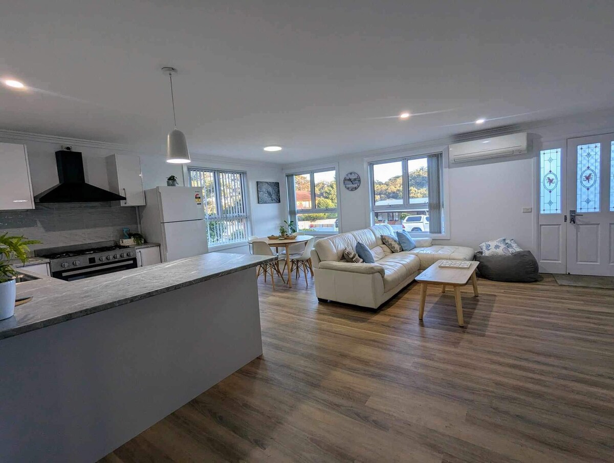 Relájate al instante mientras disfrutas de las impresionantes vistas costeras desde este elegante espacio, a solo 90 minutos al sur de Sídney y a 700 metros a pie de Seven Mile Beach. Abre las puertas plegables para sentir la brisa del mar y ampliar el espacio hasta una amplia terraza. O acurrúcate junto a la chimenea en los meses más fríos. Con el servicio de desayuno y la zona de estar al aire libre, tendrás muchos lugares para reunirte. Tu perro puede correr libremente en el patio cubierto de hierba y totalmente vallado, y disfrutar de las playas de la región aptas para perros.