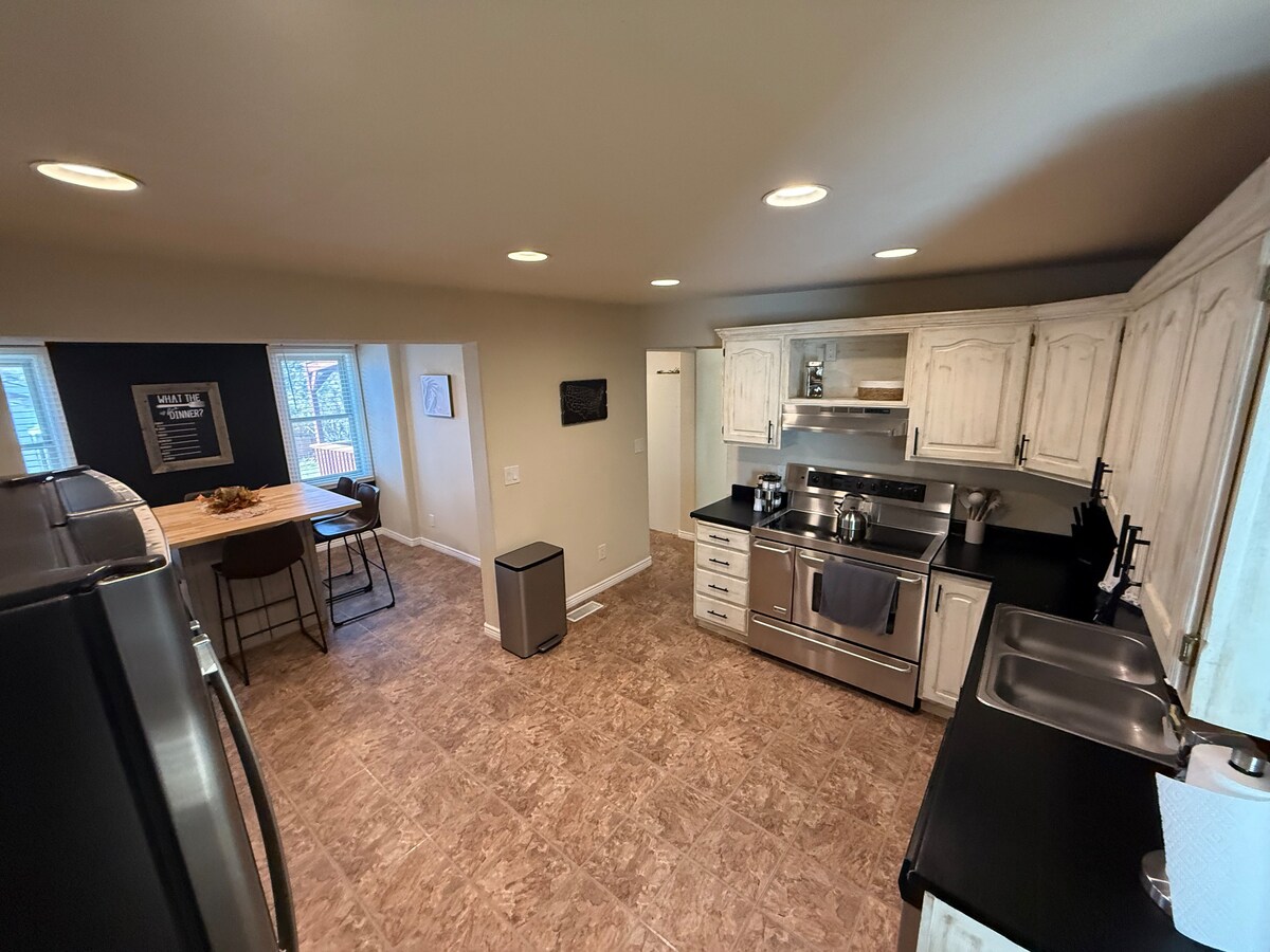 Espacio familiar, internet de fibra de alta velocidad, ubicación céntrica, barrio tranquilo. • Juguetes y juegos. • Totalmente vallado en el patio trasero con césped y sillas de patio. • A poca distancia a pie de una tienda de comestibles, un centro comercial y restaurantes. • A 1,6 km del comienzo del sendero. • Estacionamiento adicional.