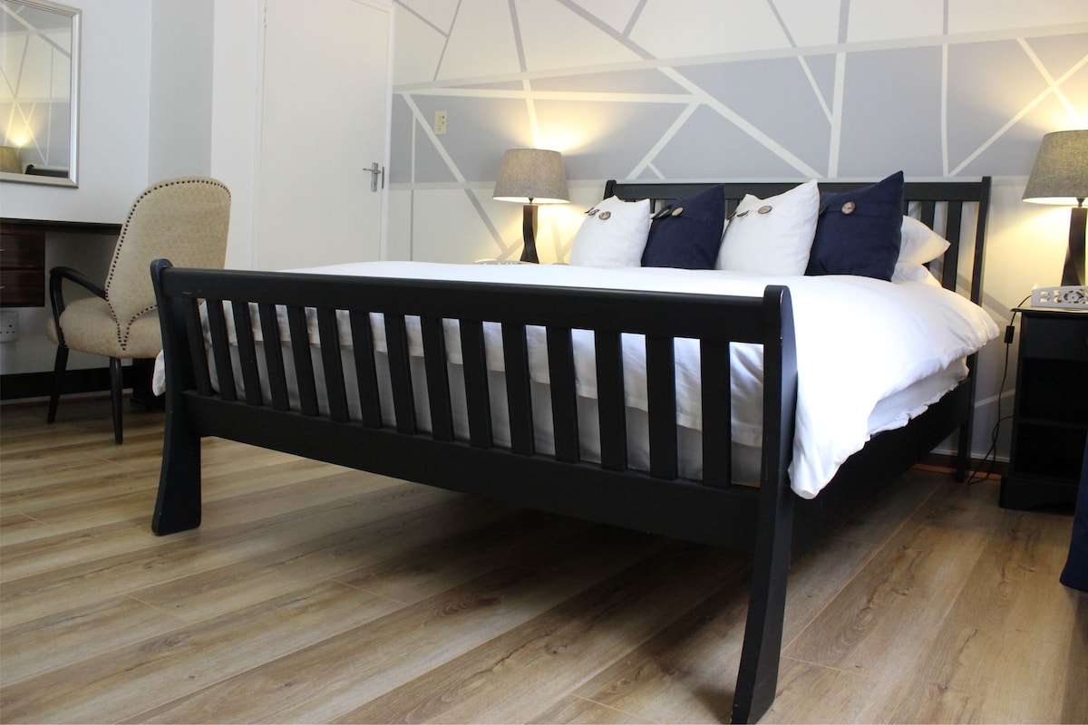 Disfruta de una experiencia de lujo en este céntrico alojamiento. Hermosa sala de estar de espacio abierto, con un dormitorio y baño privado, y comedor/cocina de planta abierta y sala de estar con TV. La cocina está totalmente equipada con todas las comodidades necesarias. El aparcamiento está a unos pasos de la puerta principal. Esta unidad independiente es perfecta para parejas y está rodeada de impresionantes montañas, rutas de senderismo y a poca distancia a pie de restaurantes, tiendas, campo de golf y la reserva natural de Marloth.