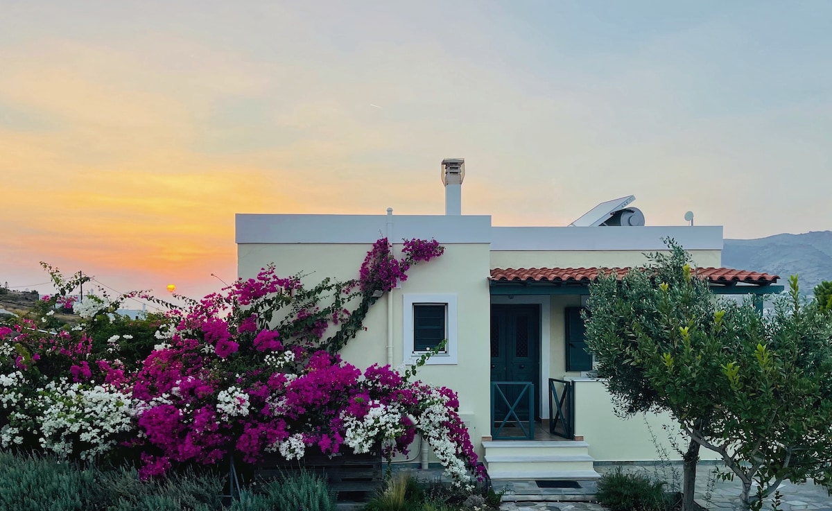 A tranquil getaway in the Greek Islands. The Villa, with its many terraces overlooking the sea and 100 meters from an idyllic cove, is off the beaten path. Two-minute stroll to a quiet swimming beach. Sleeps 10. Open kitchen, dining & living room with marble floors, and marble patios dripping with bougainvillea. Free Wi-Fi. Amazing on-island managers. Peaceful setting. Please note there is only one bathroom.