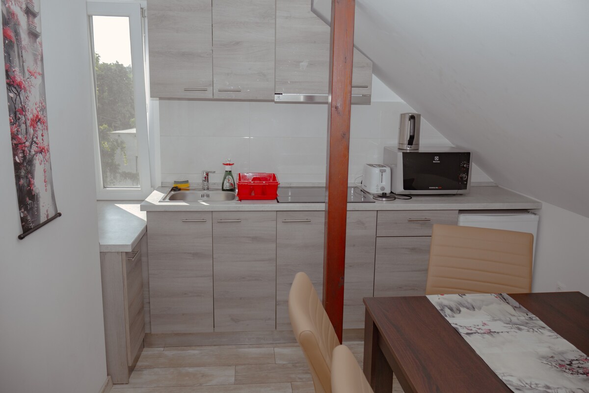 El apartamento Hikari en la azotea ofrece relajación para las vacaciones de los huéspedes en la costa norte del lago Balaton. Nuestros huéspedes pueden llegar a su alojamiento a 10-15 minutos (900 m) a pie de la estación de tren y la estación de autobuses. Ofrecemos asistencia para bicicletas y estacionamiento para aquellos que viajan en bicicleta o coche con una cámara de valla. Hay dos apartamentos en el edificio. Ambos apartamentos cuentan con una entrada independiente desde una escalera El precio incluye el impuesto local sobre el alojamiento
